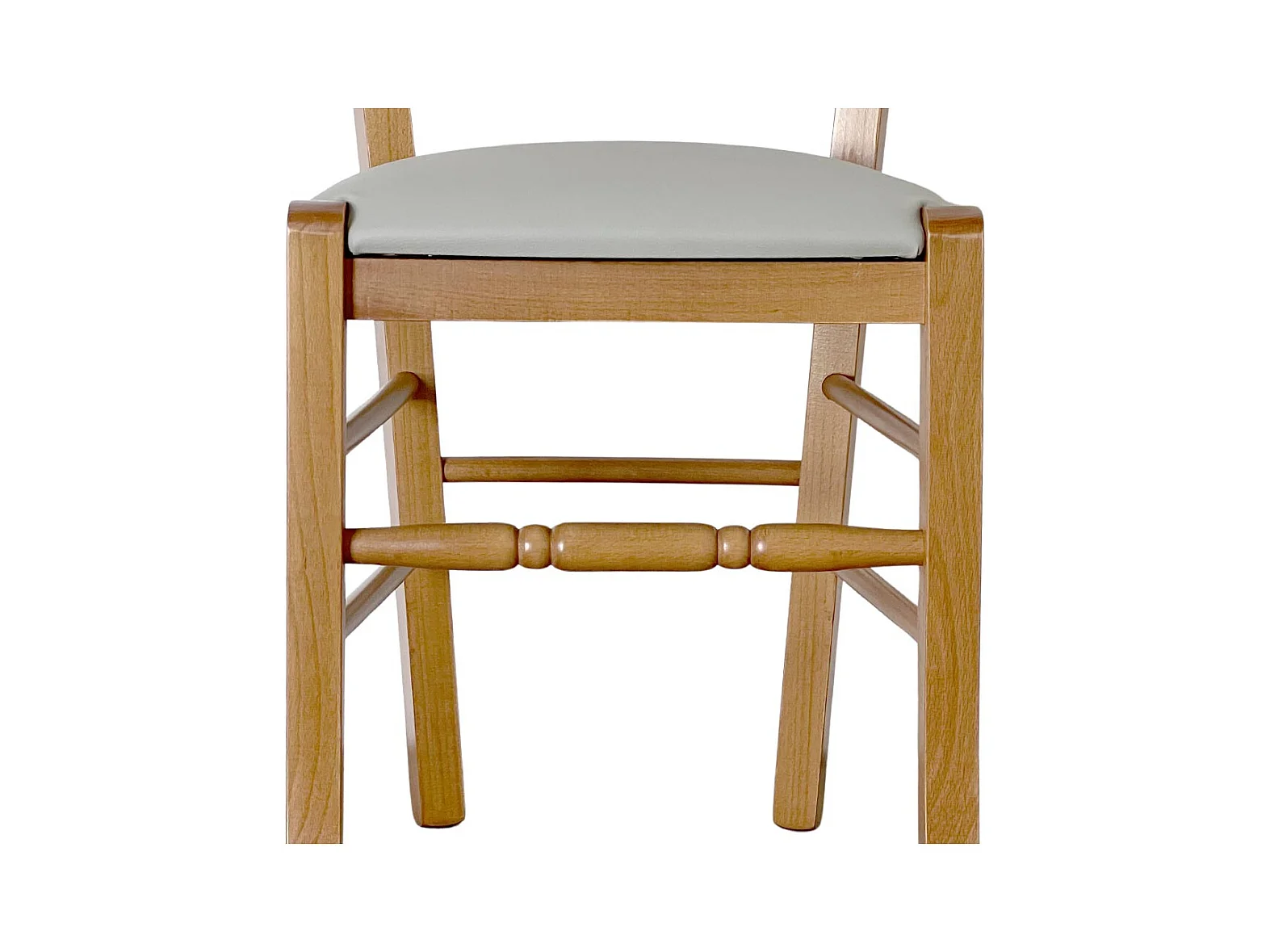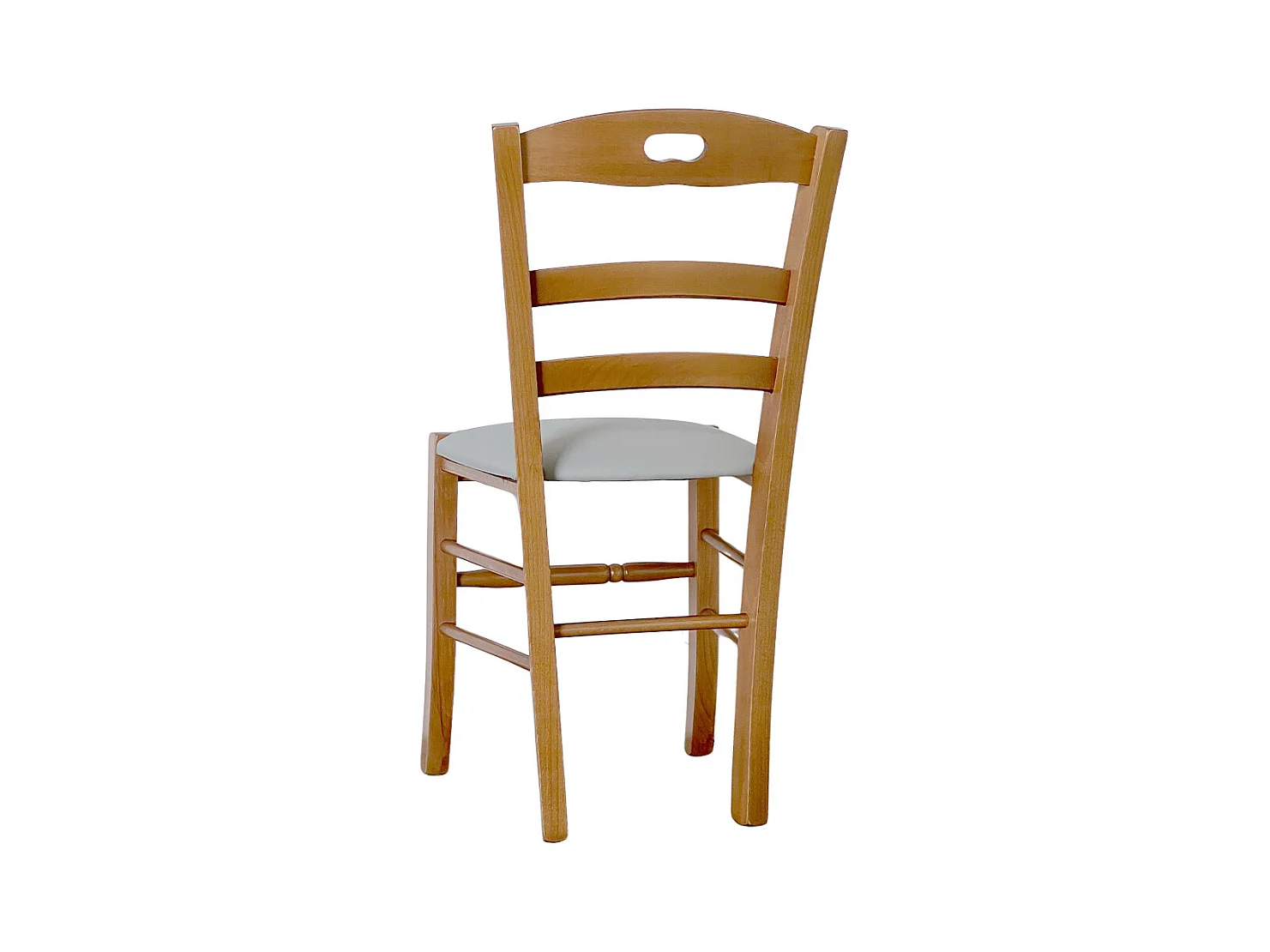 Sedia legno paesana noce chiaro con seduta imbottita similpelle tortora