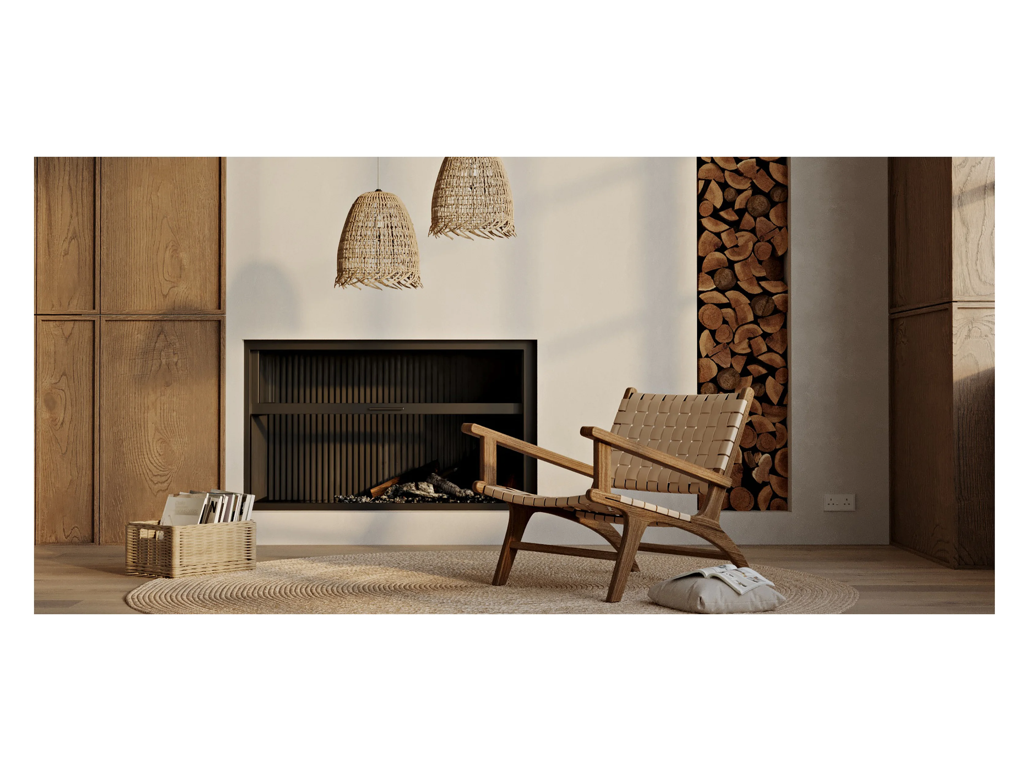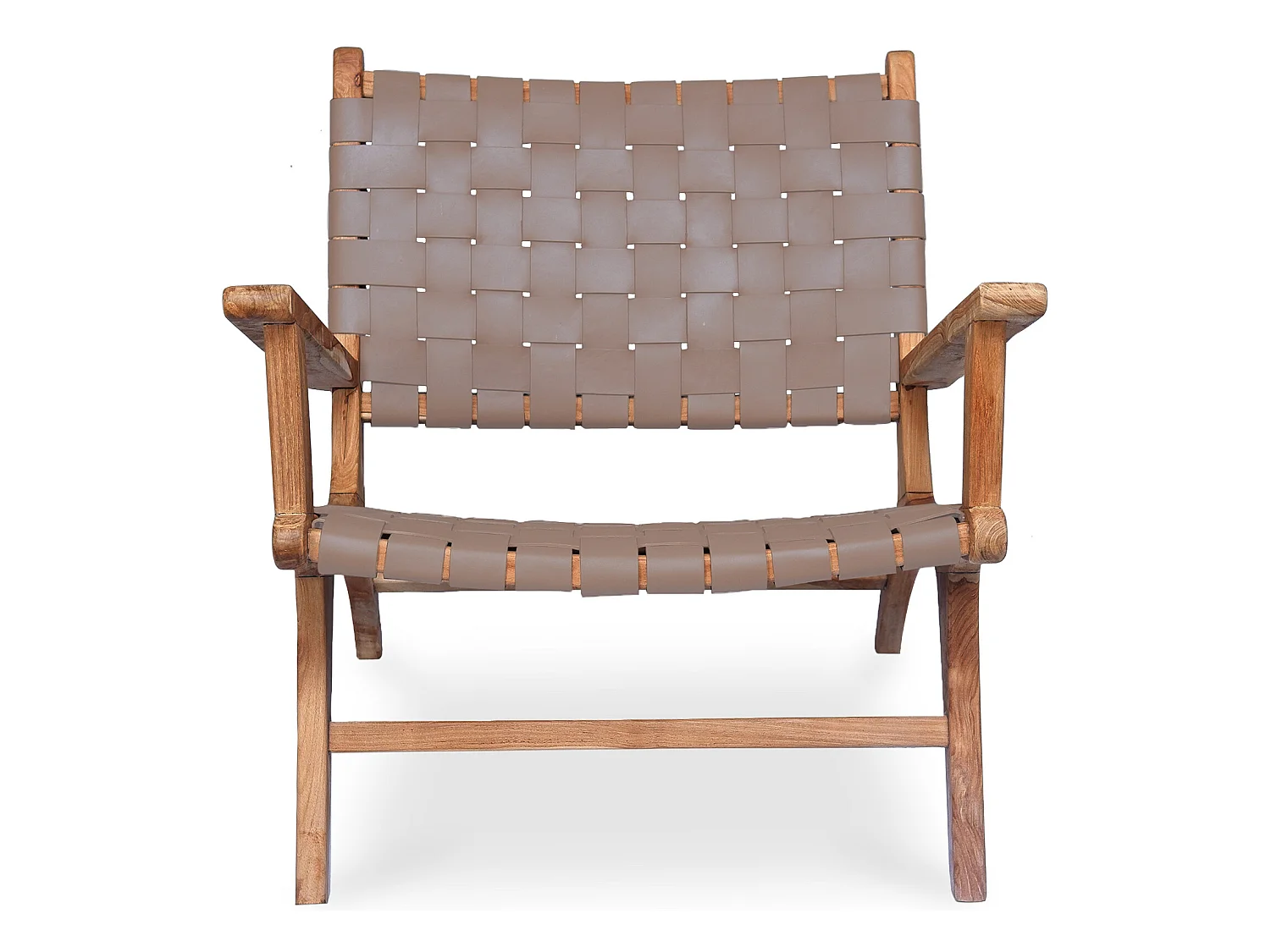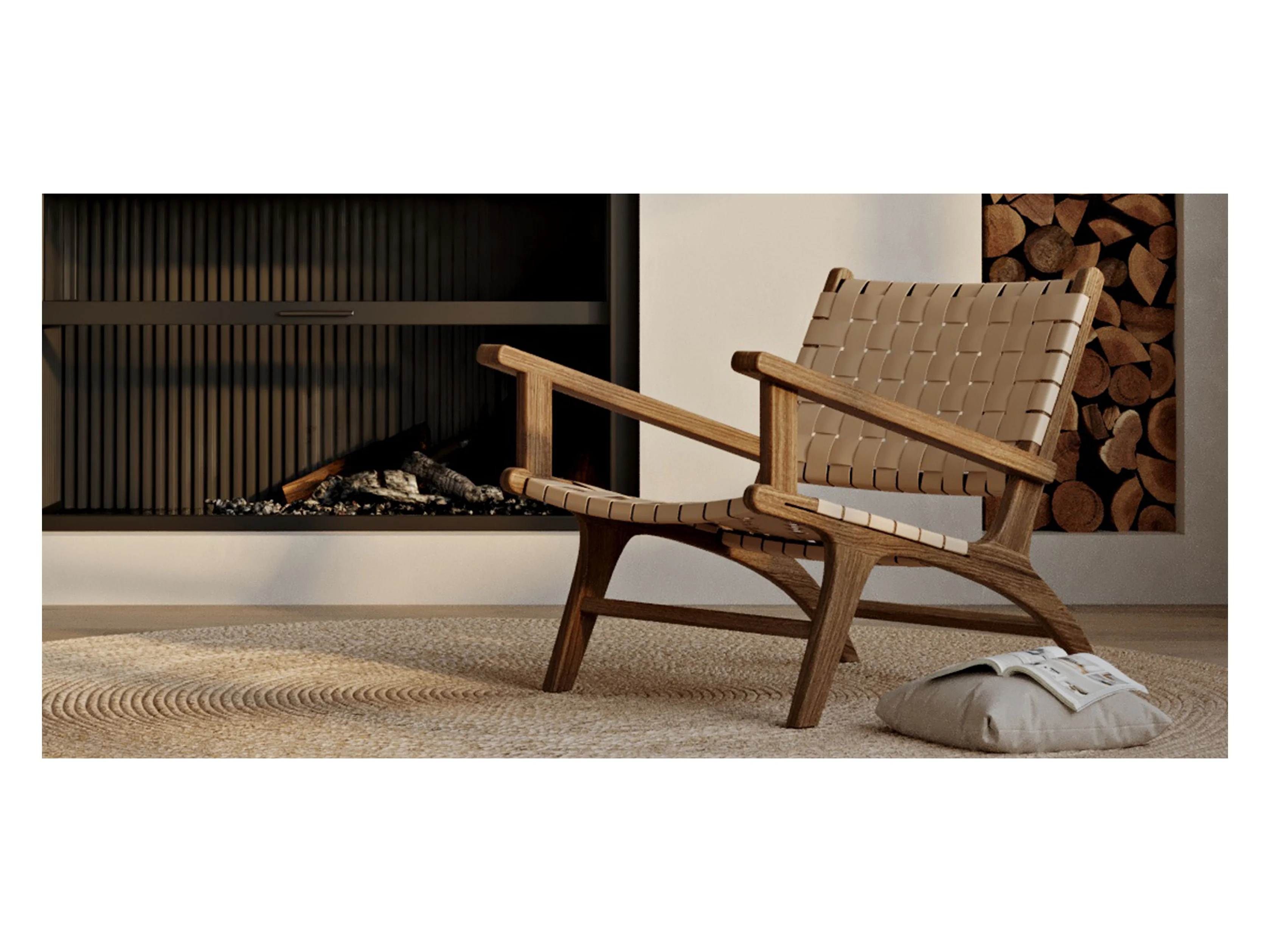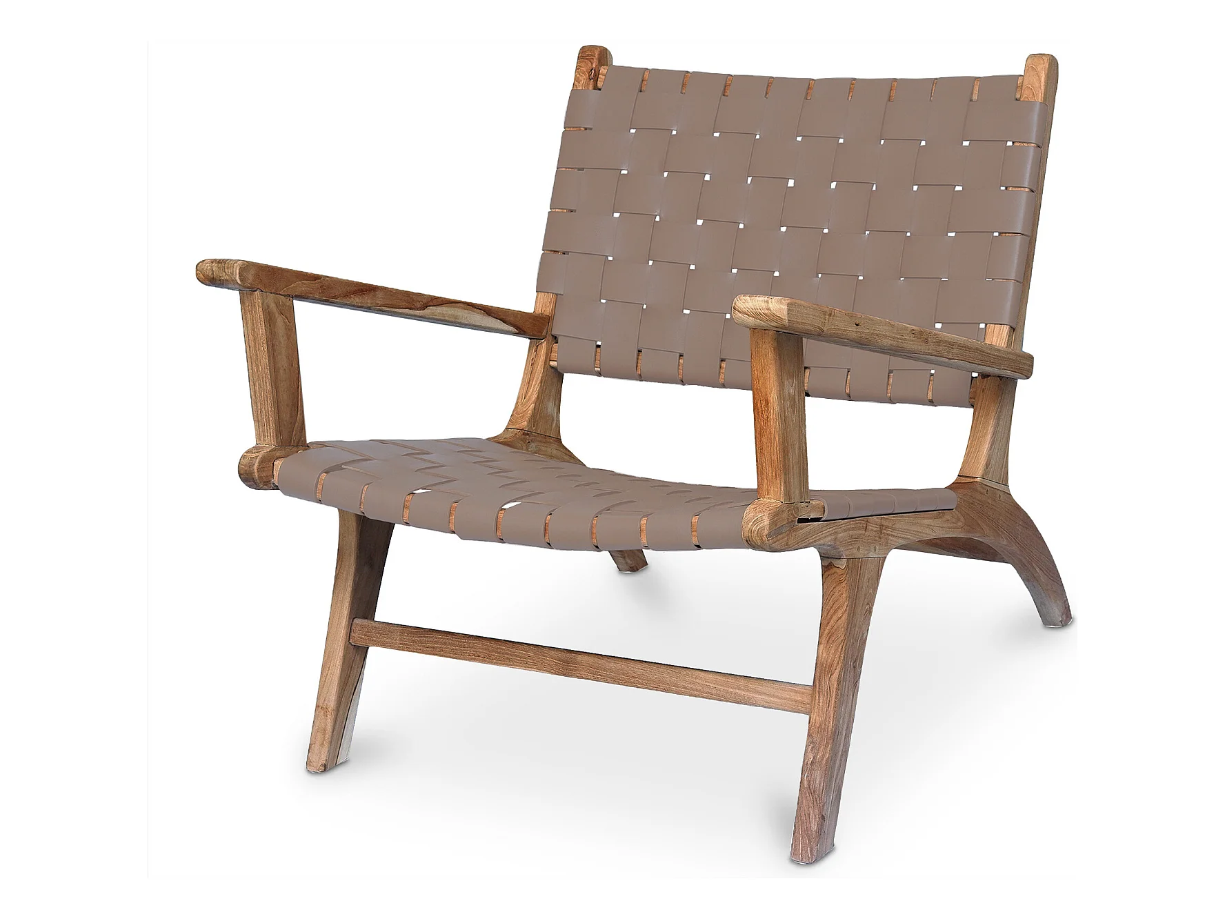 Poltrona da Salotto - Design Boho Bali - Legno e Pelle - Recia