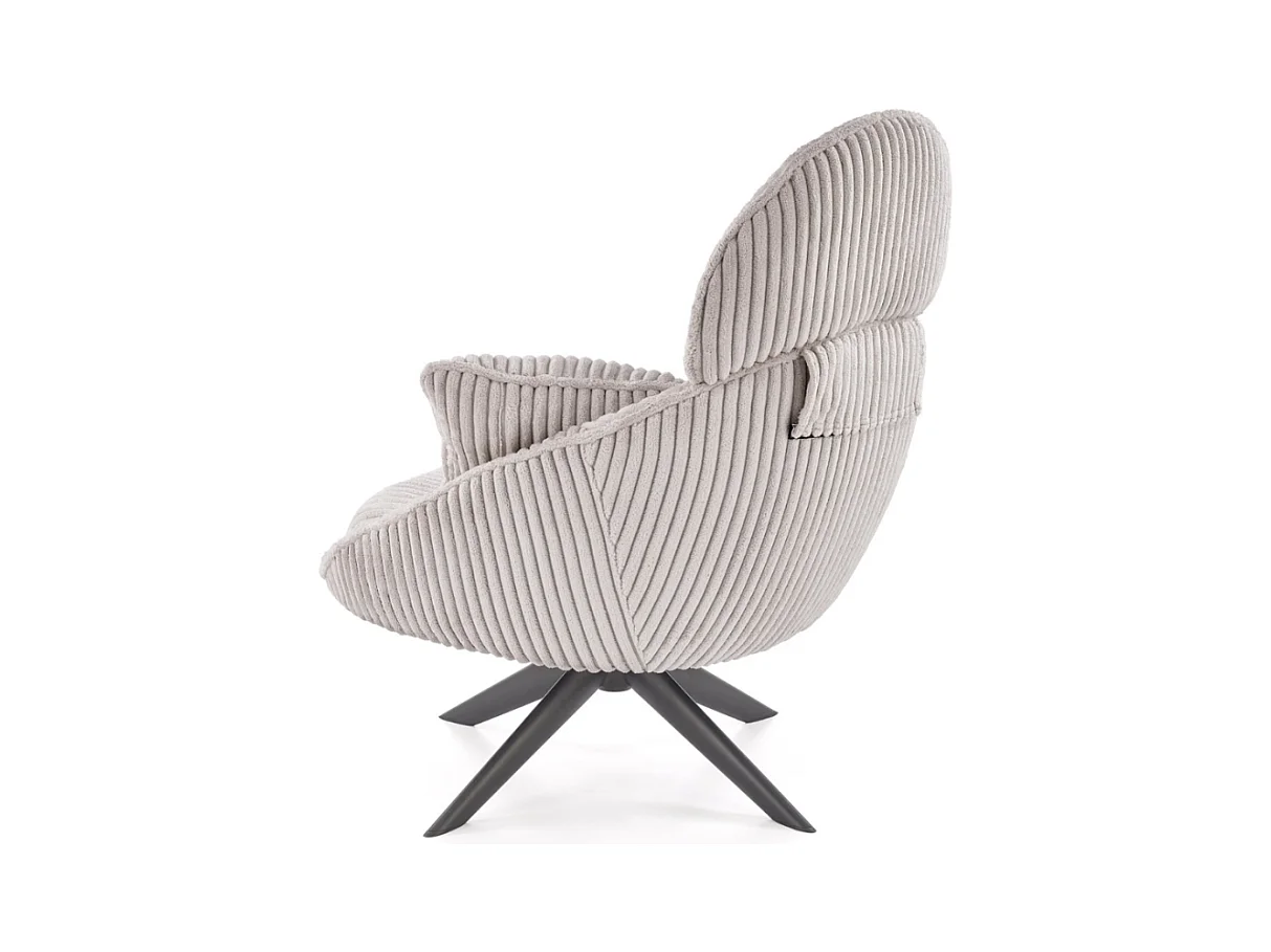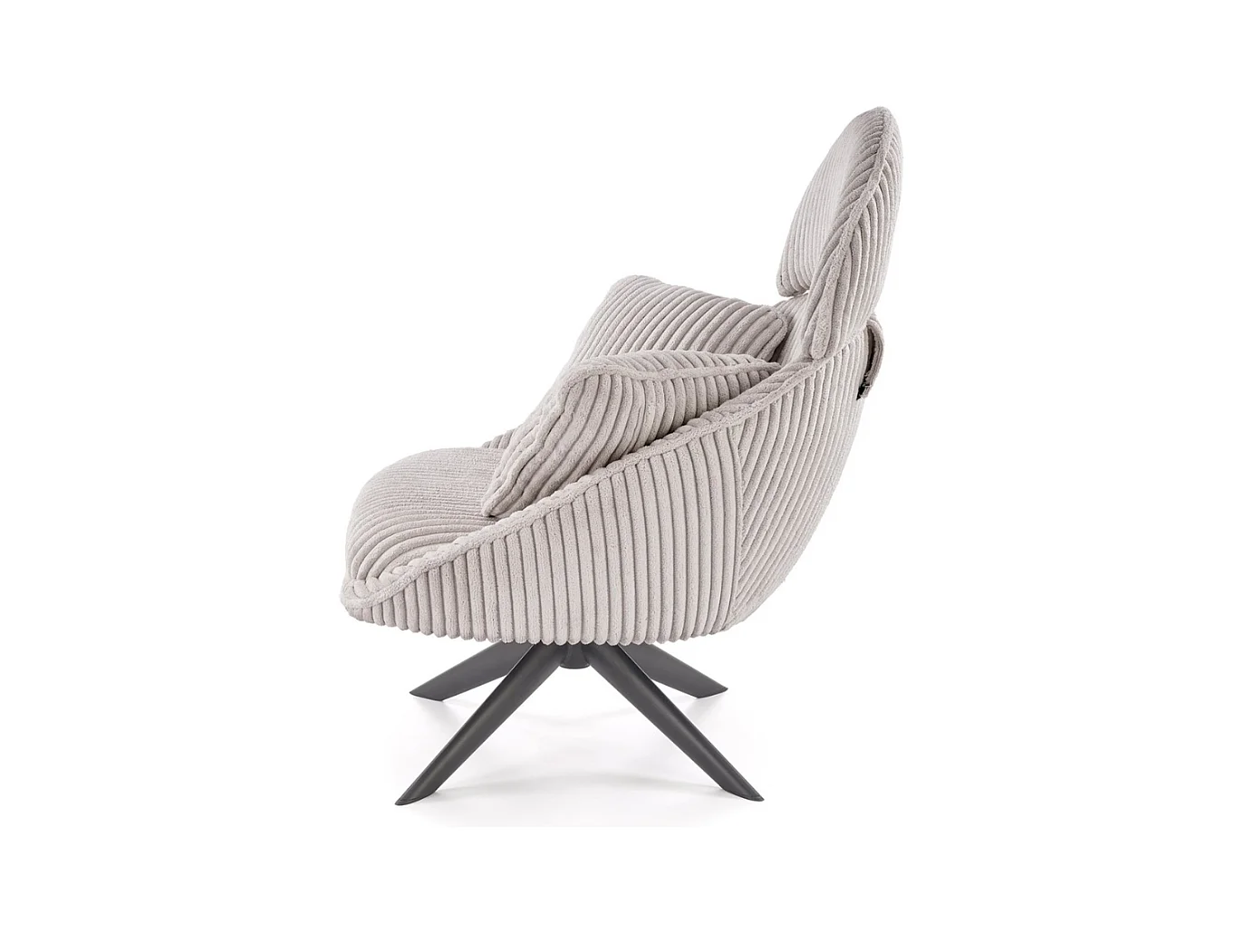 Sedia lounge di design in tessuto a coste cappuccino con cuscini HELENA