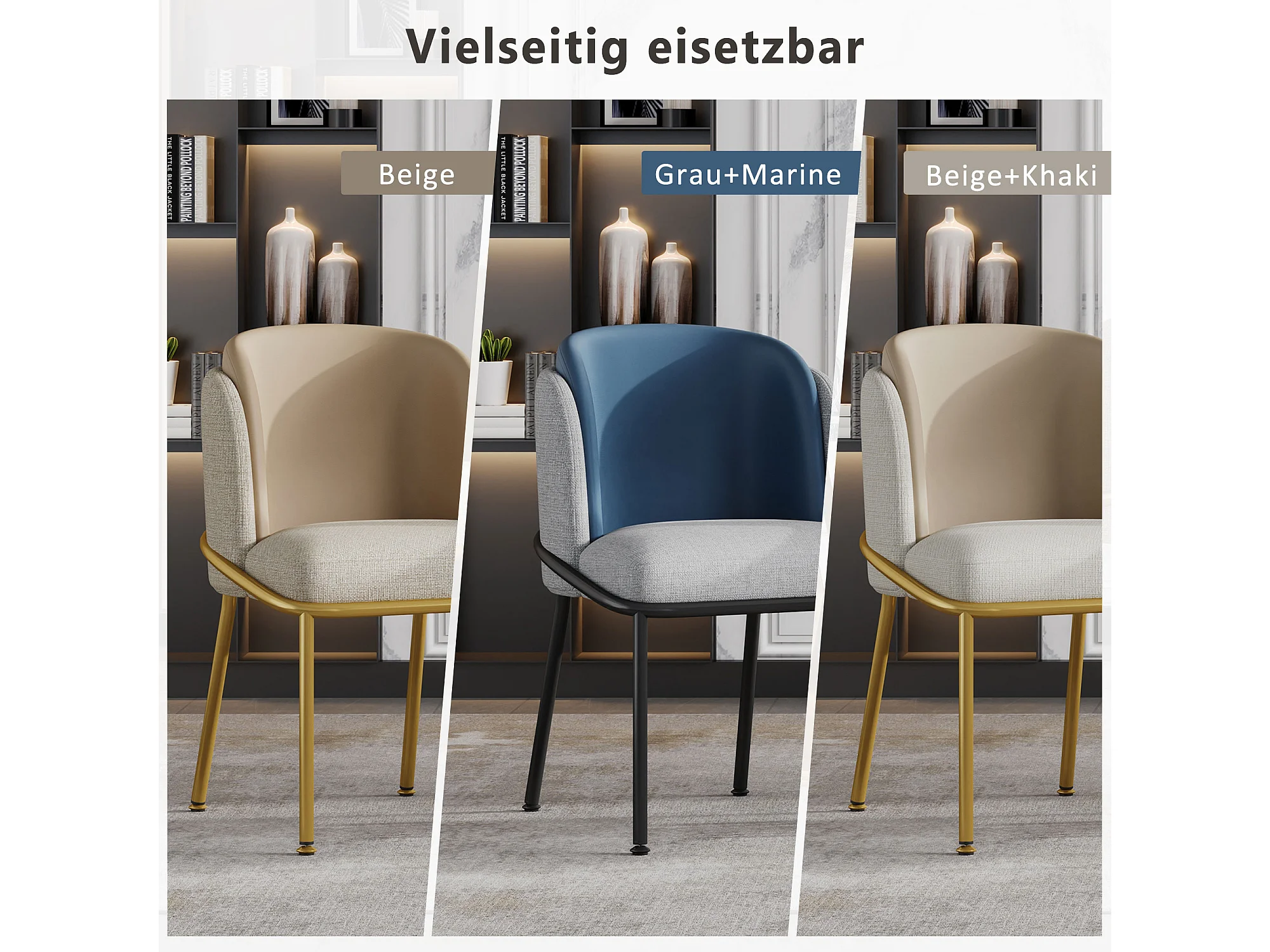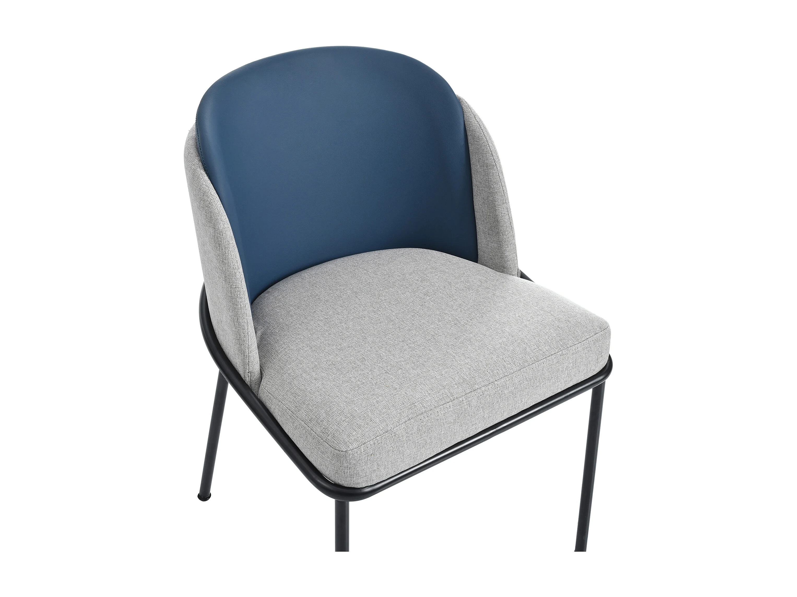 Sedia moderna con gambe regolabili, design scandinavo, metallo e legno, grigio e blu navy (55x55x85 cm)