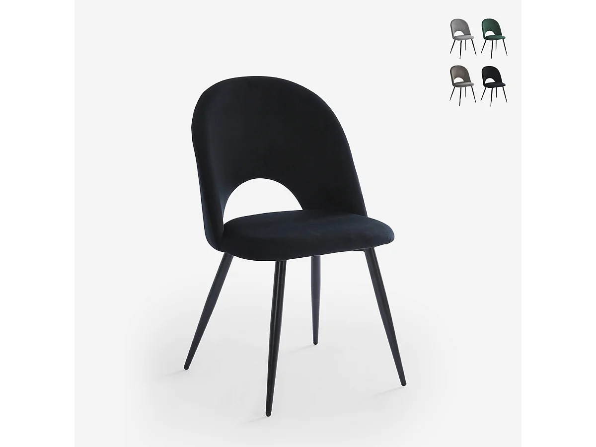 Sedia moderna in velluto e imbottita per sala da pranzo cucina Zarda - Nero