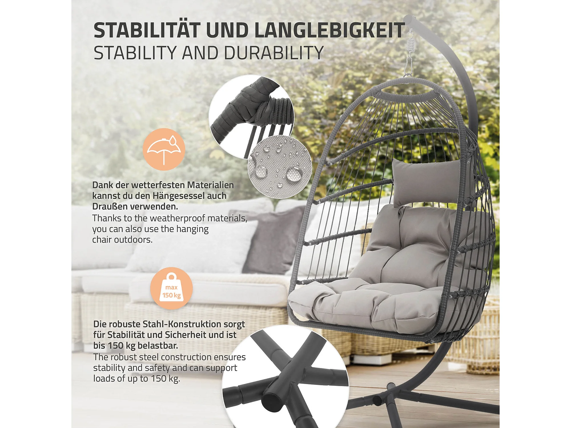 Sedia pensile con telaio grigio chiaro e custodia max. 150kg per interno/esterno