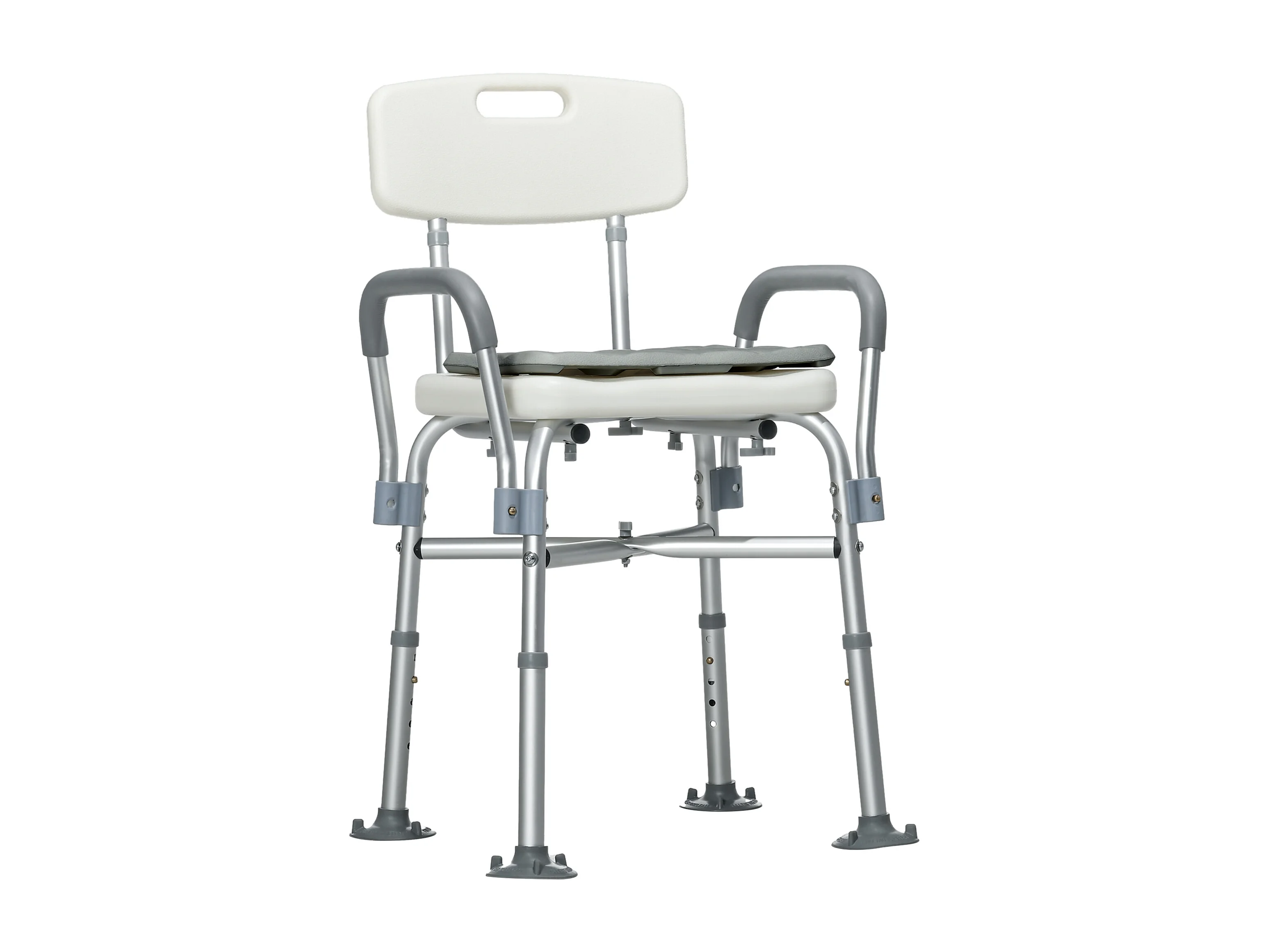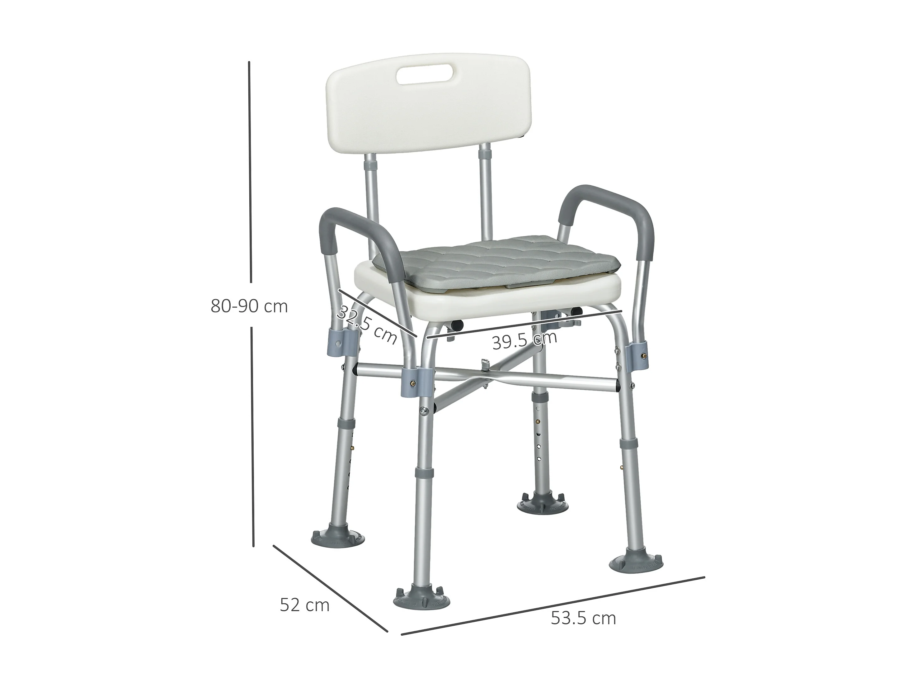 Sedia per doccia ad altezza regolabile con braccioli e cuscino bianca