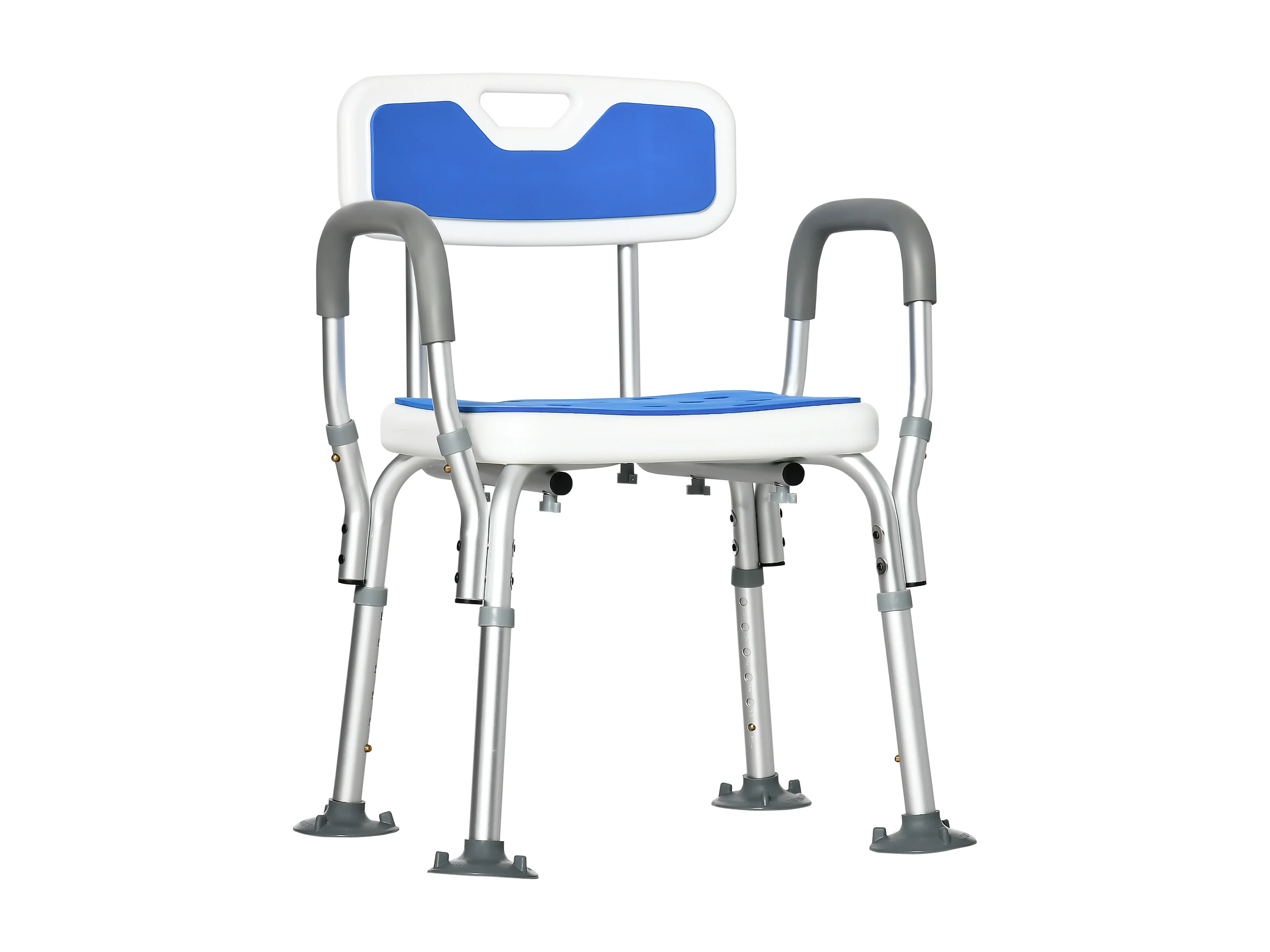 Sedia per doccia con seduta scanalata e altezza regolabile blu