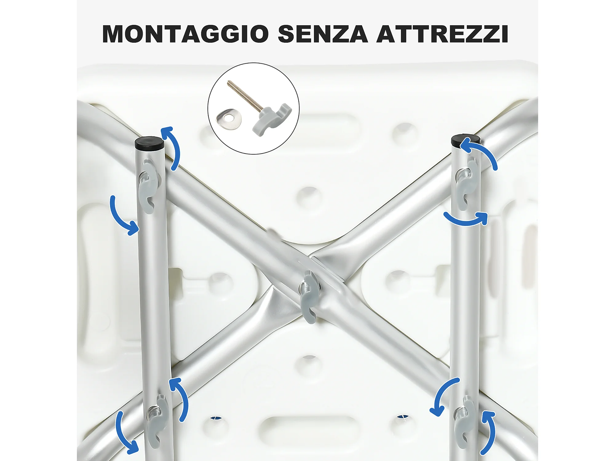 Sgabello da doccia ad altezza regolabile in alluminio e plastica