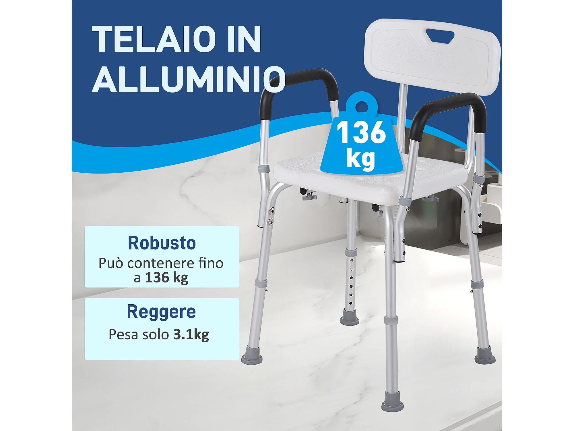 Sedia per doccia con altezza regolabile in alluminio bianco