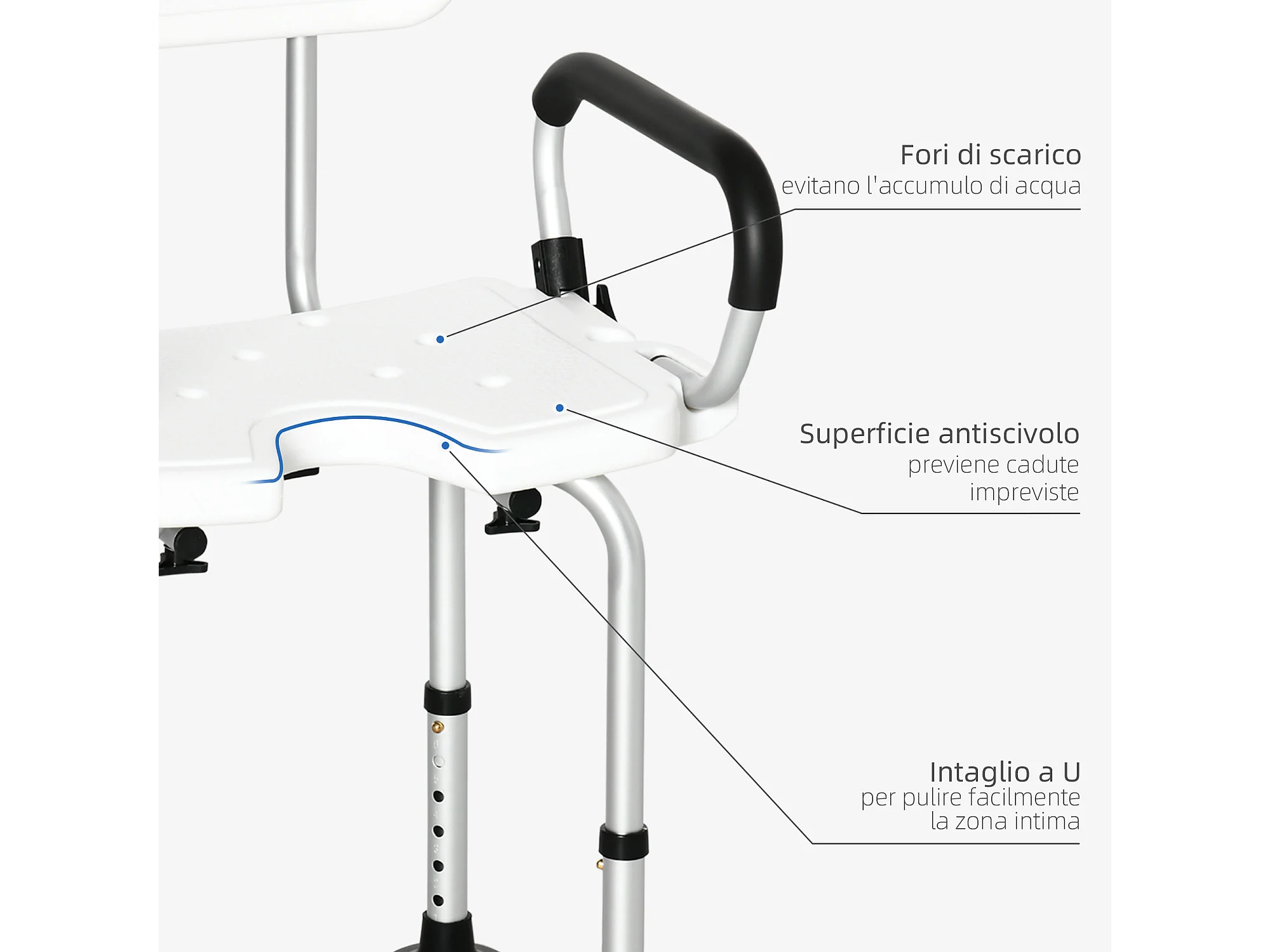 Sedia per doccia e vasca da bagno con braccioli e altezza regolabile