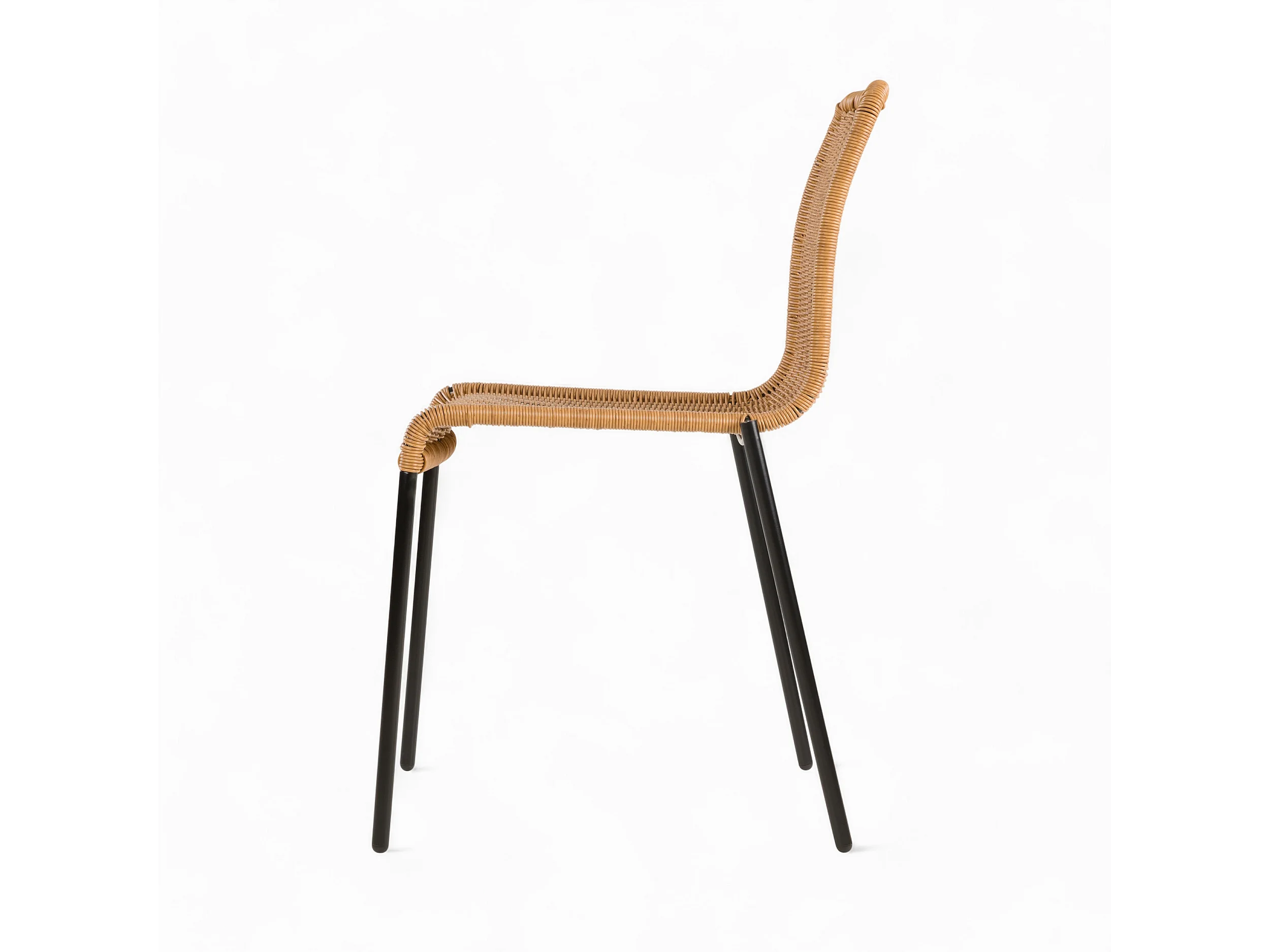 Set di 2 sedie in resina naturale intrecciata con gambe in metallo - Messa