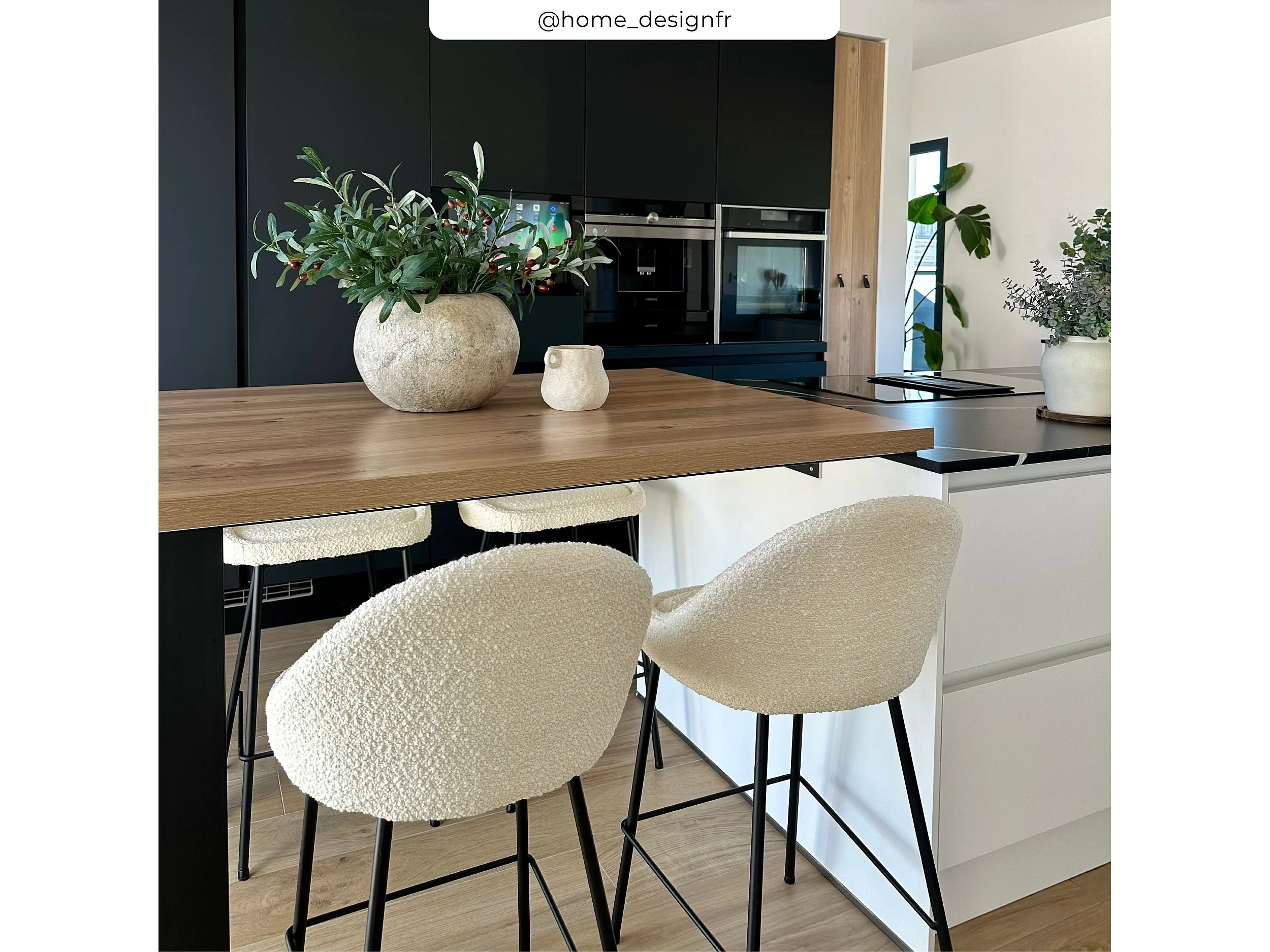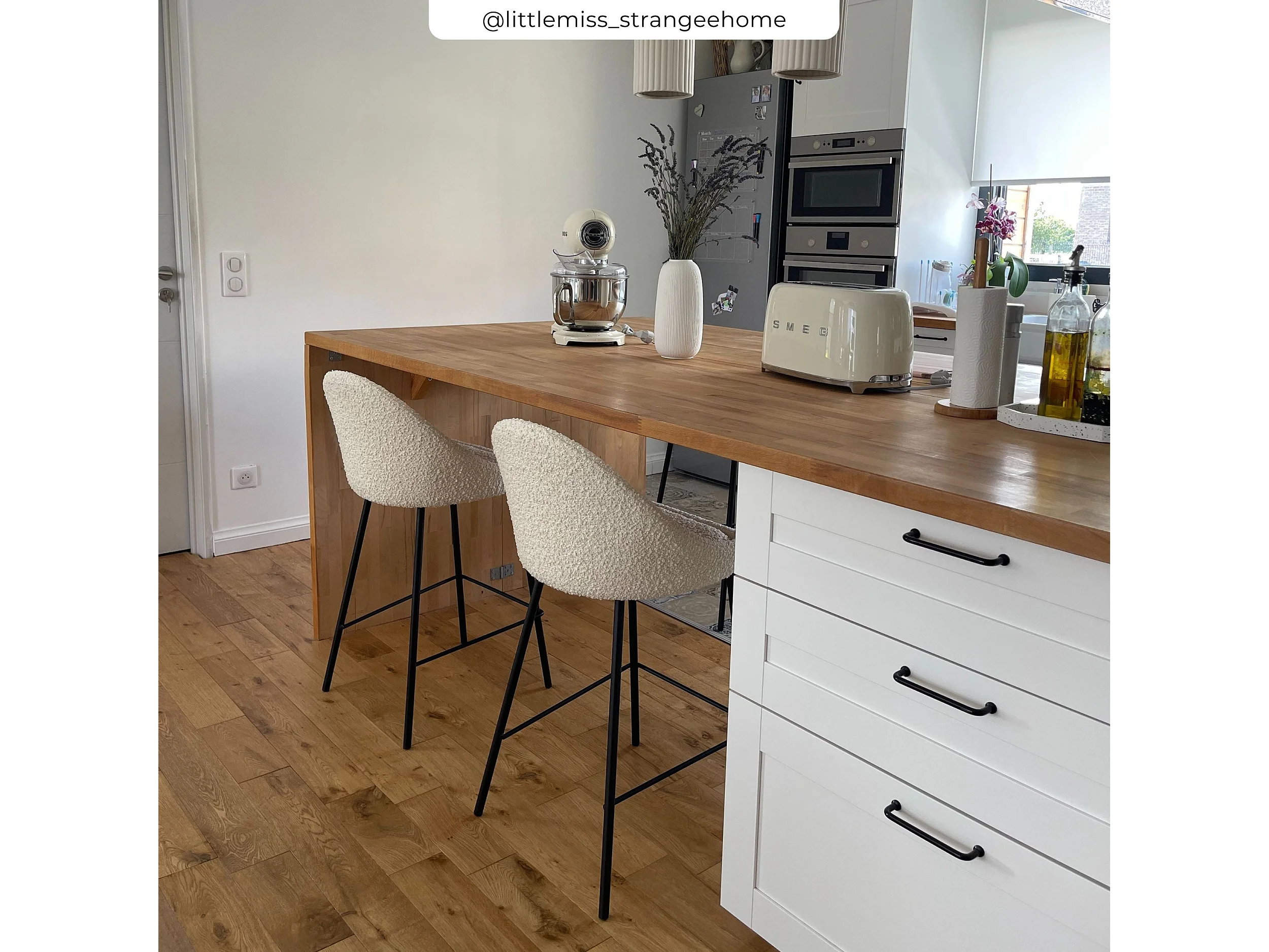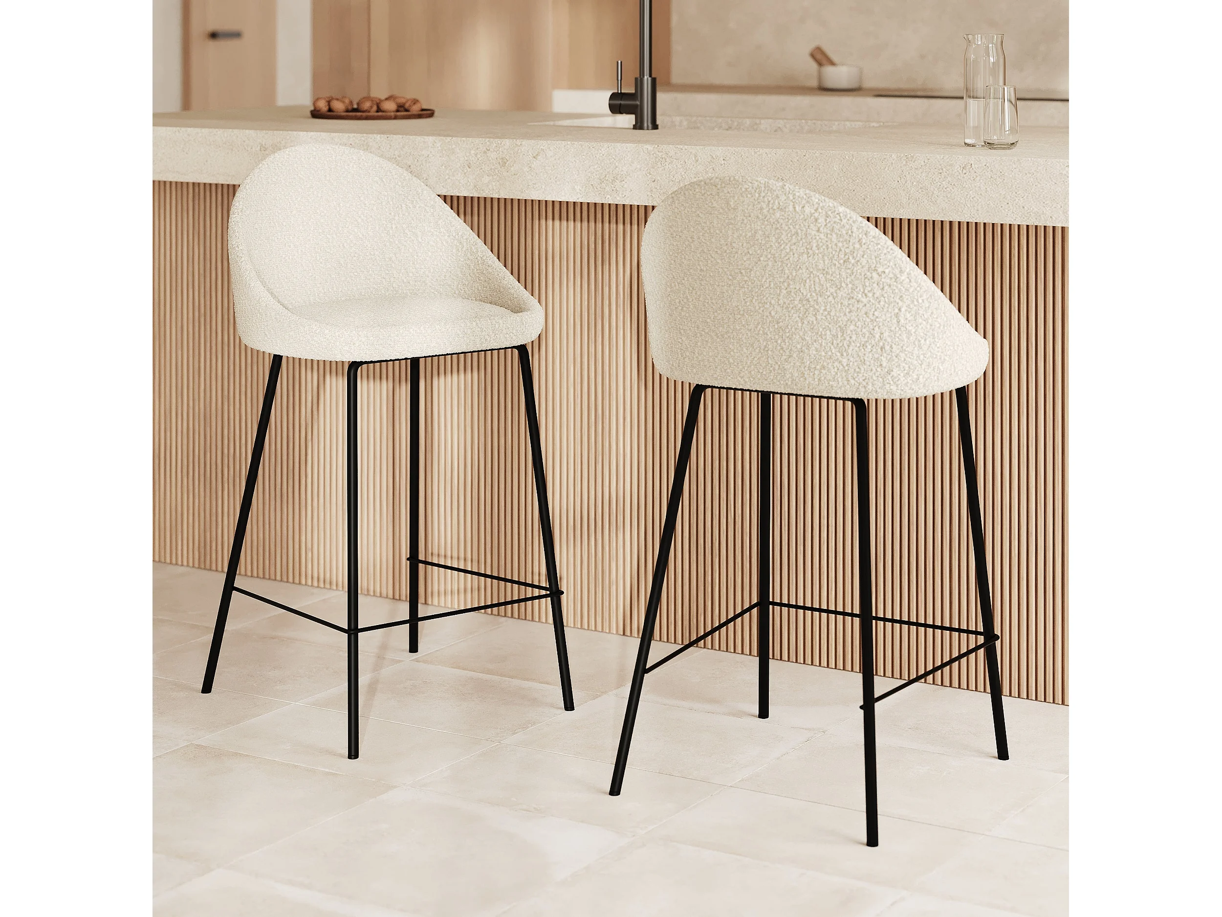 Set di 2 sedie per isola centrale da 65 cm in tessuto bouclette bianco - Misty