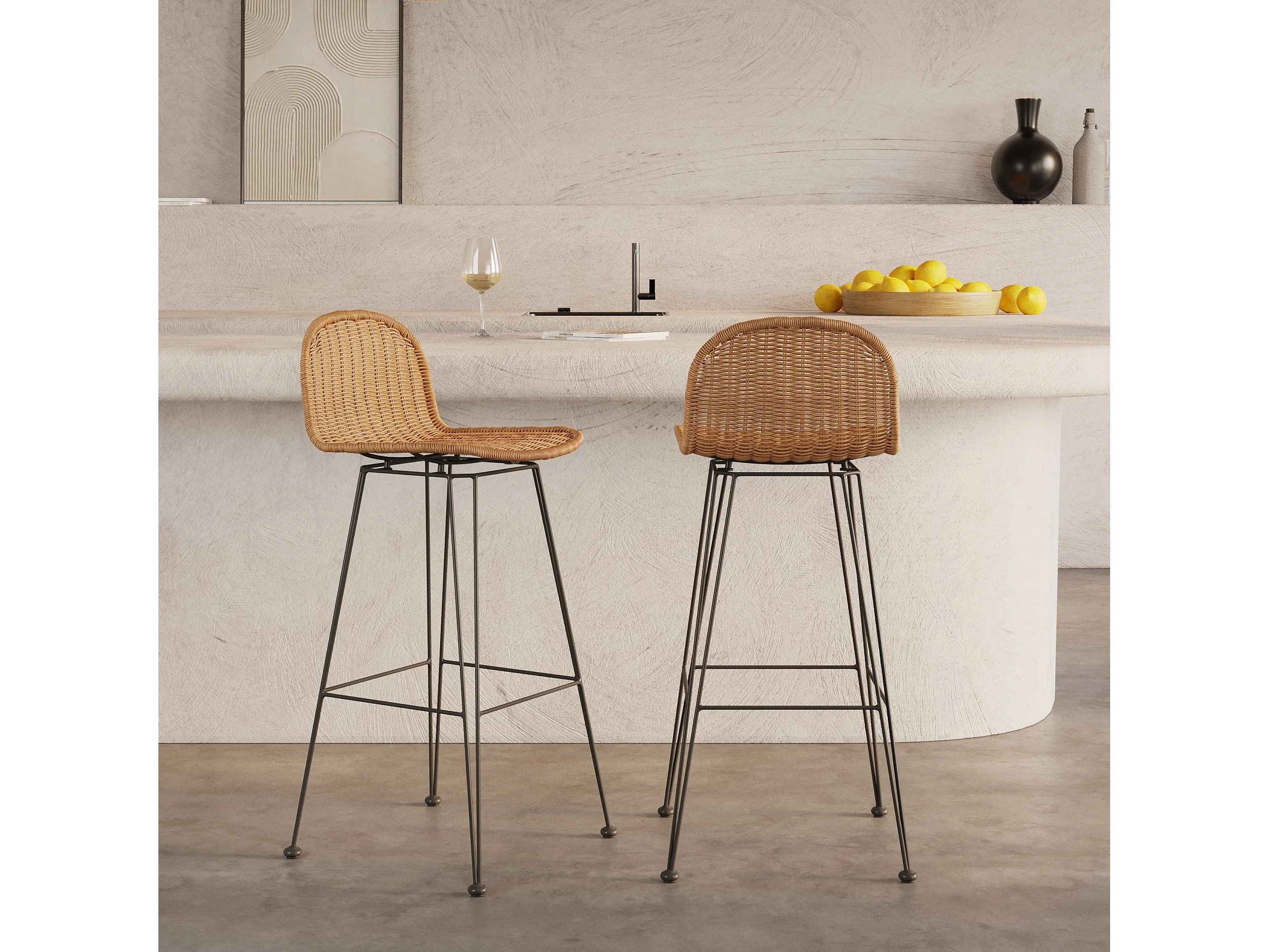 Set di 2 sedie per isola centrale in resina intrecciata marrone 63 cm - Jigani