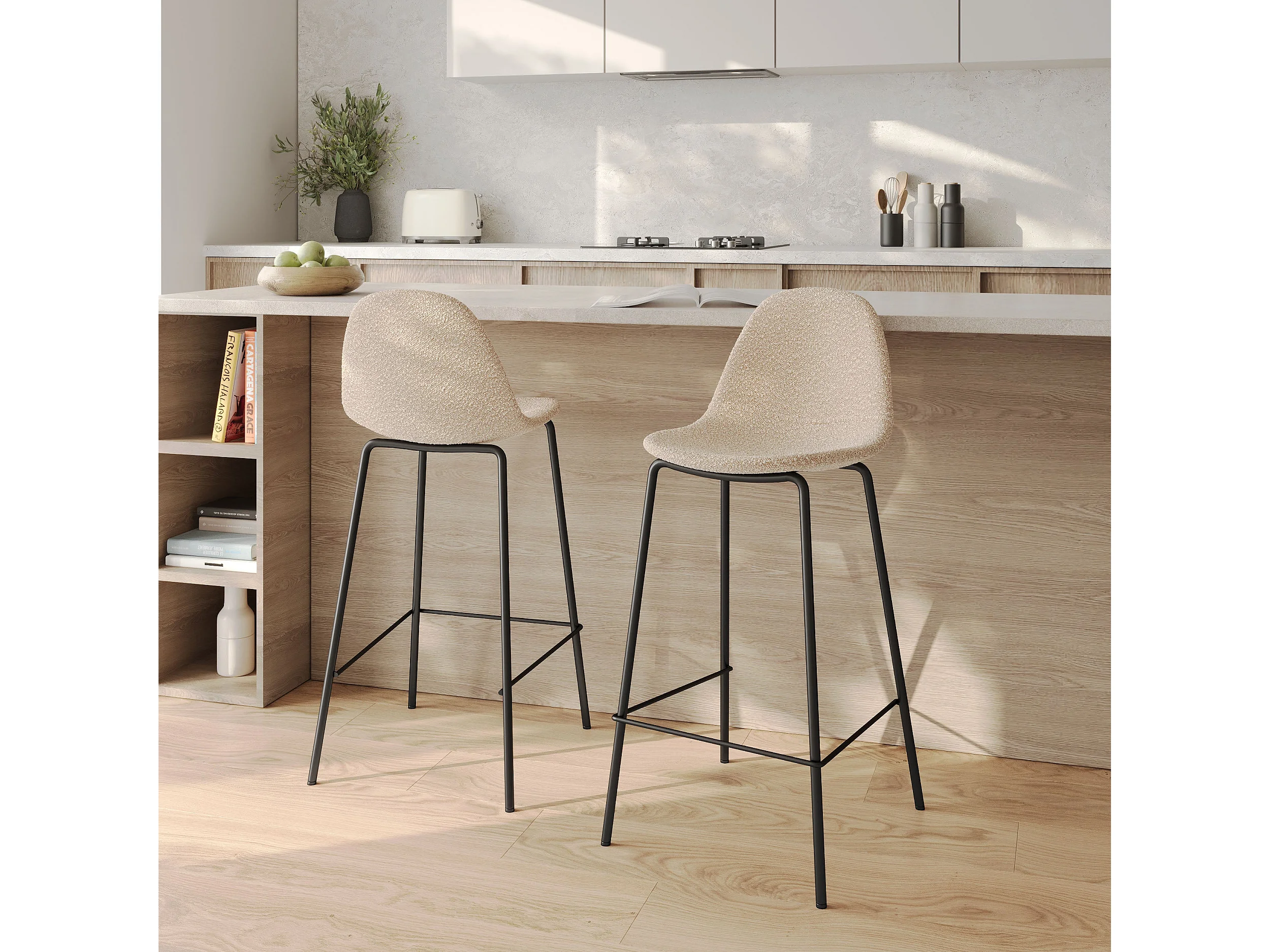 Set di 2 sedie per isola centrale in tessuto beige 65.5 cm - Henrik