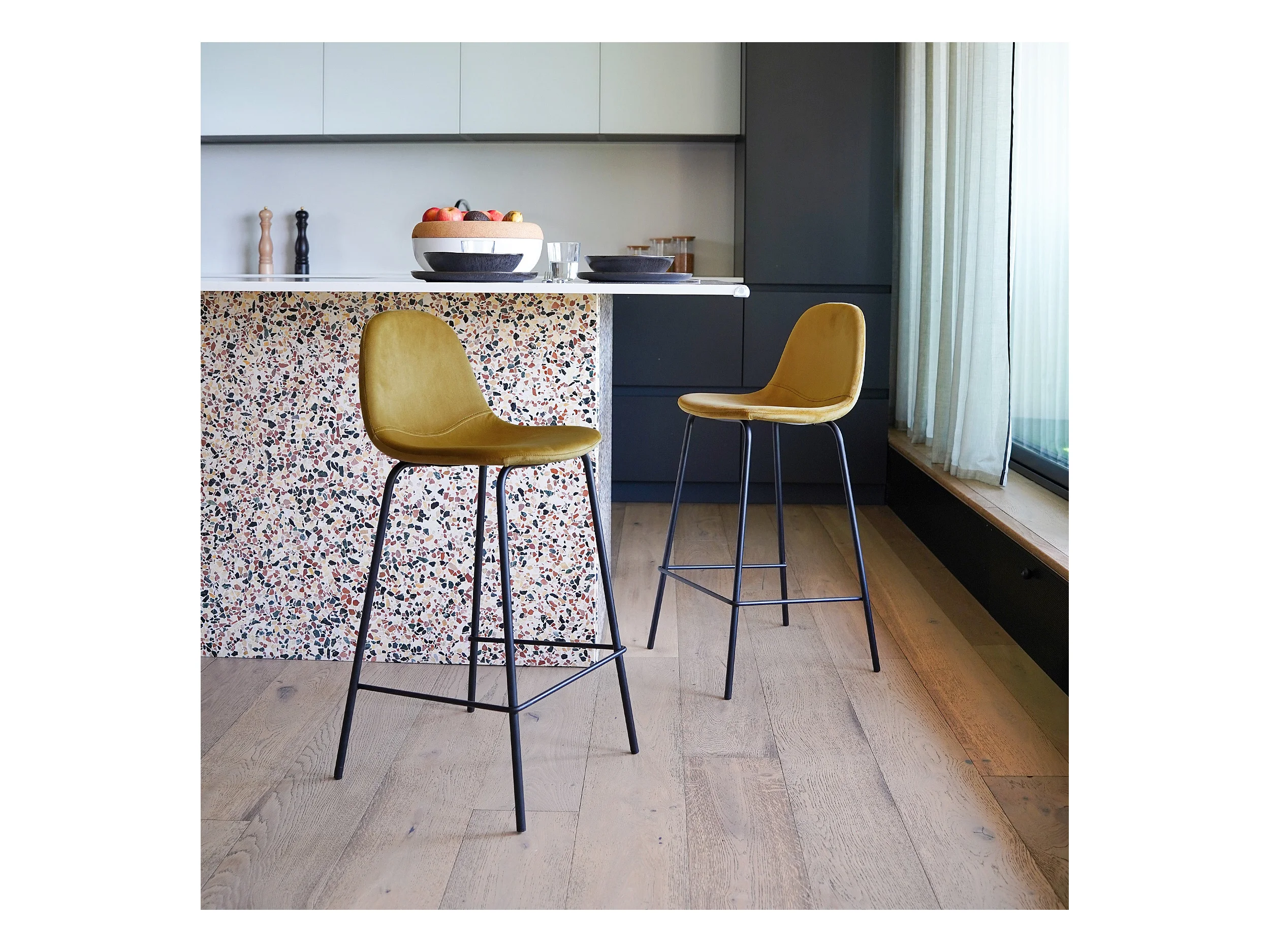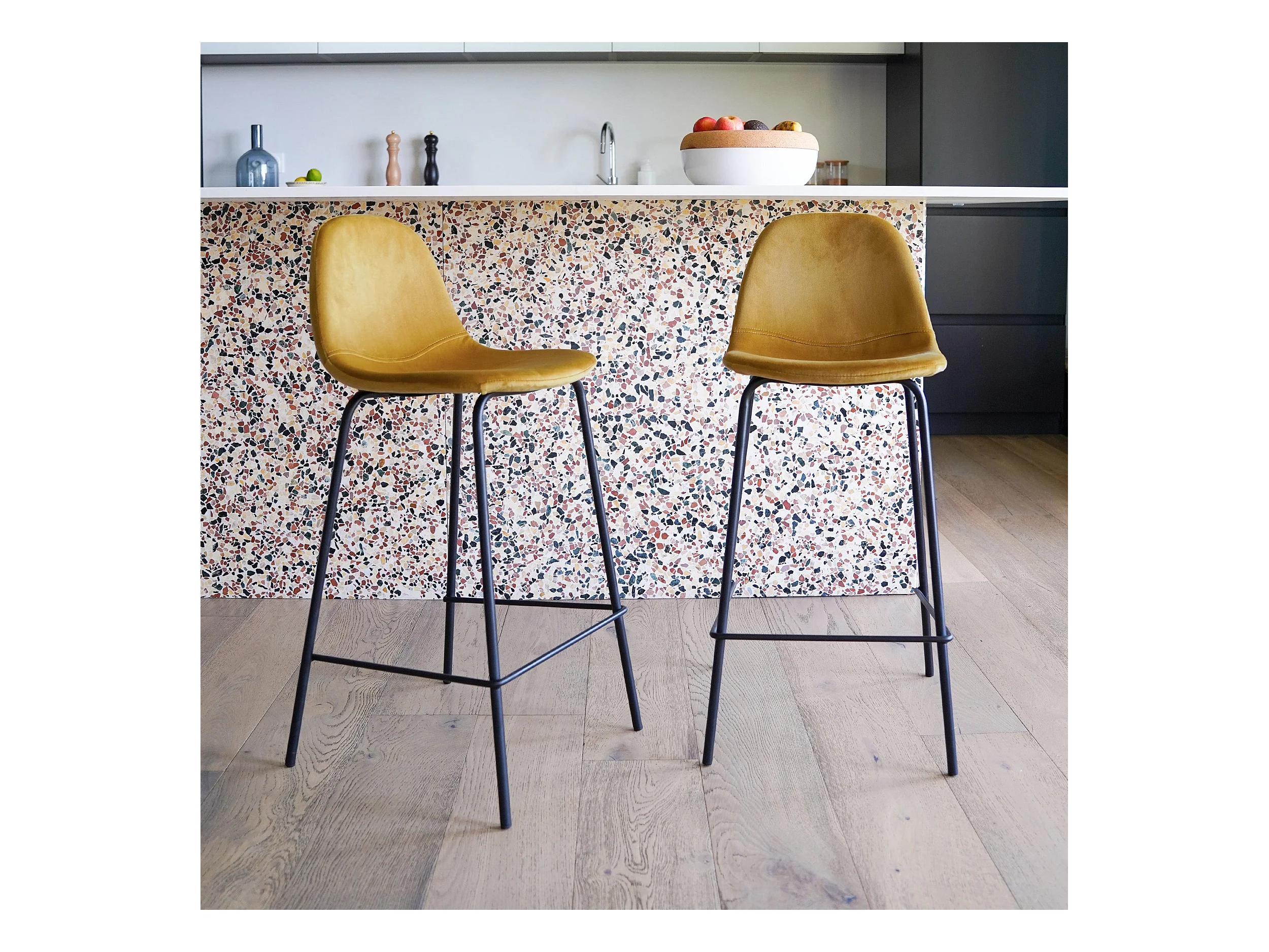 Set di 2 sedie per isola centrale in velluto giallo 65 cm - Misty
