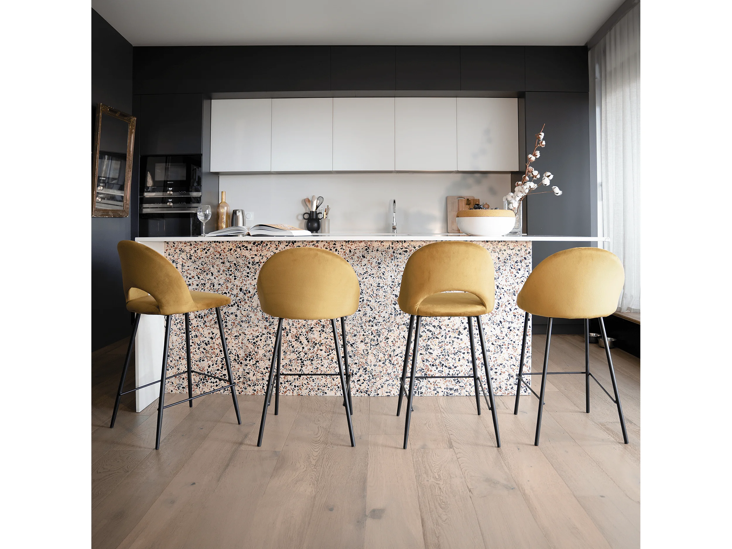 Set di 2 sedie per isola centrale 65 cm in velluto giallo - Pénélope
