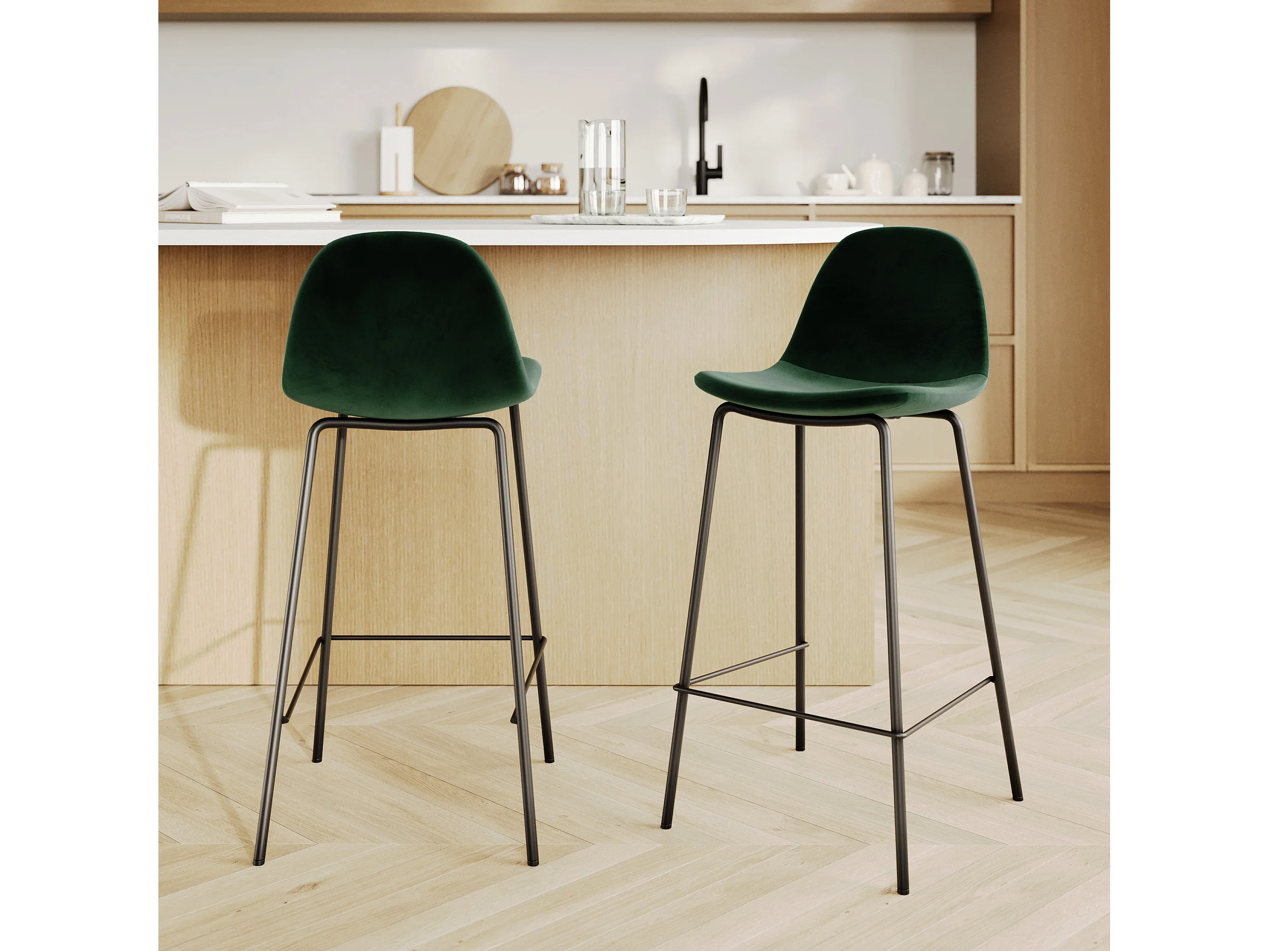 Set di 2 sedie per isola centrale 65 cm in velluto verde scuro - Henrik