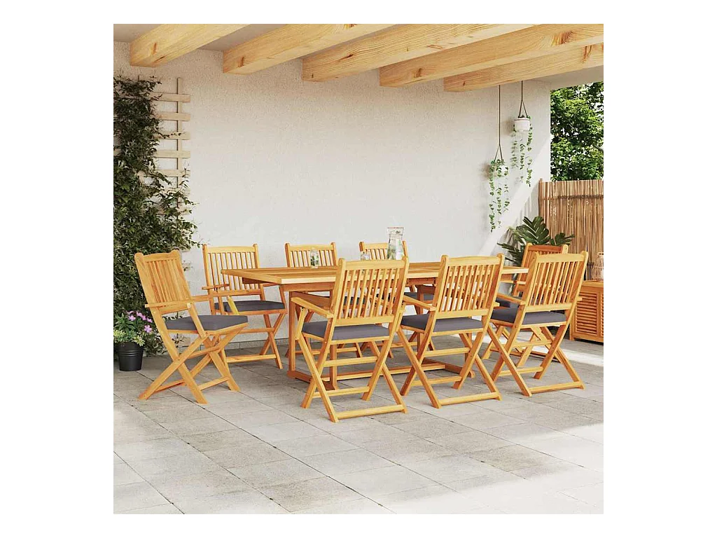 Set di 8 sedie da giardino con cuscini in legno massello di acacia
