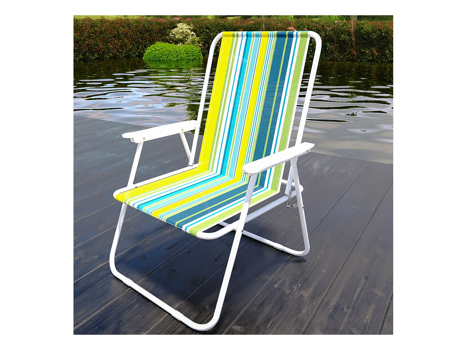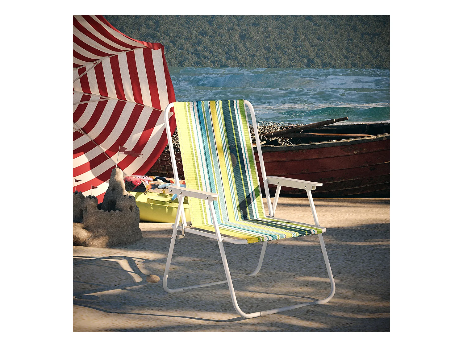 Sedia Pieghevole Da Spiaggia Campeggio Camping Leggera E Resistente In Metallo In Tessuto Oxford 600D Con Braccioli Seggiola Verde Azzurro Giallo