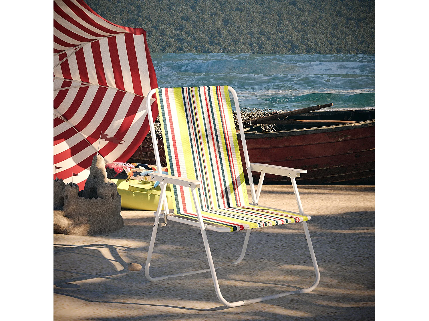 Sedia Pieghevole Da Spiaggia Campeggio Camping Leggera E Resistente In Metallo In Tessuto Oxford 600D Con Braccioli Seggiola Verde Blu Rosso