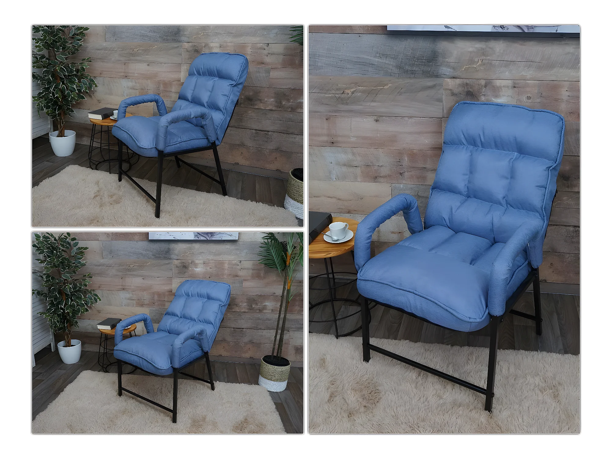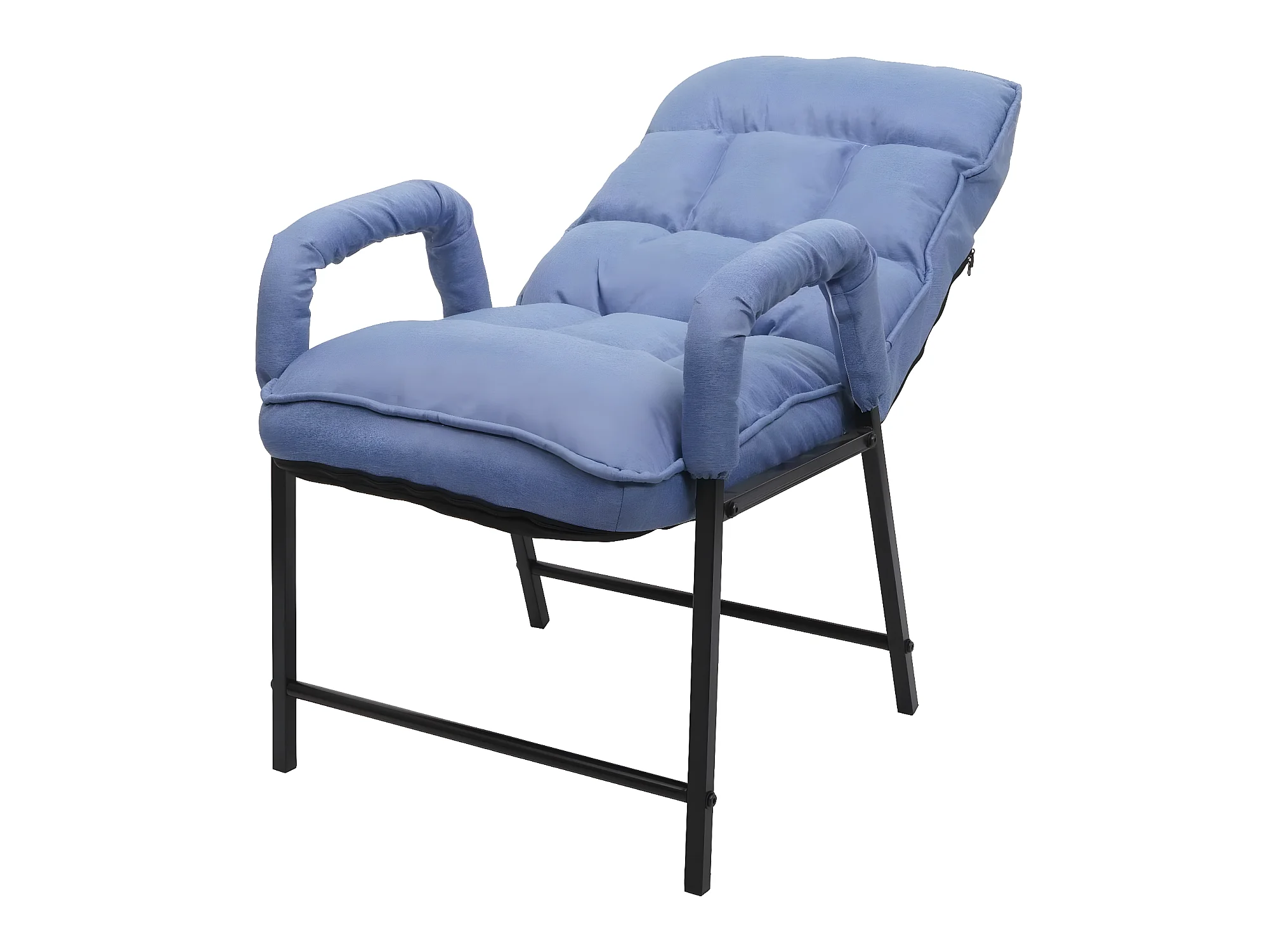 Sedia poltrona imbottita relax regolabile MCW-K40 metallo tessuto blu