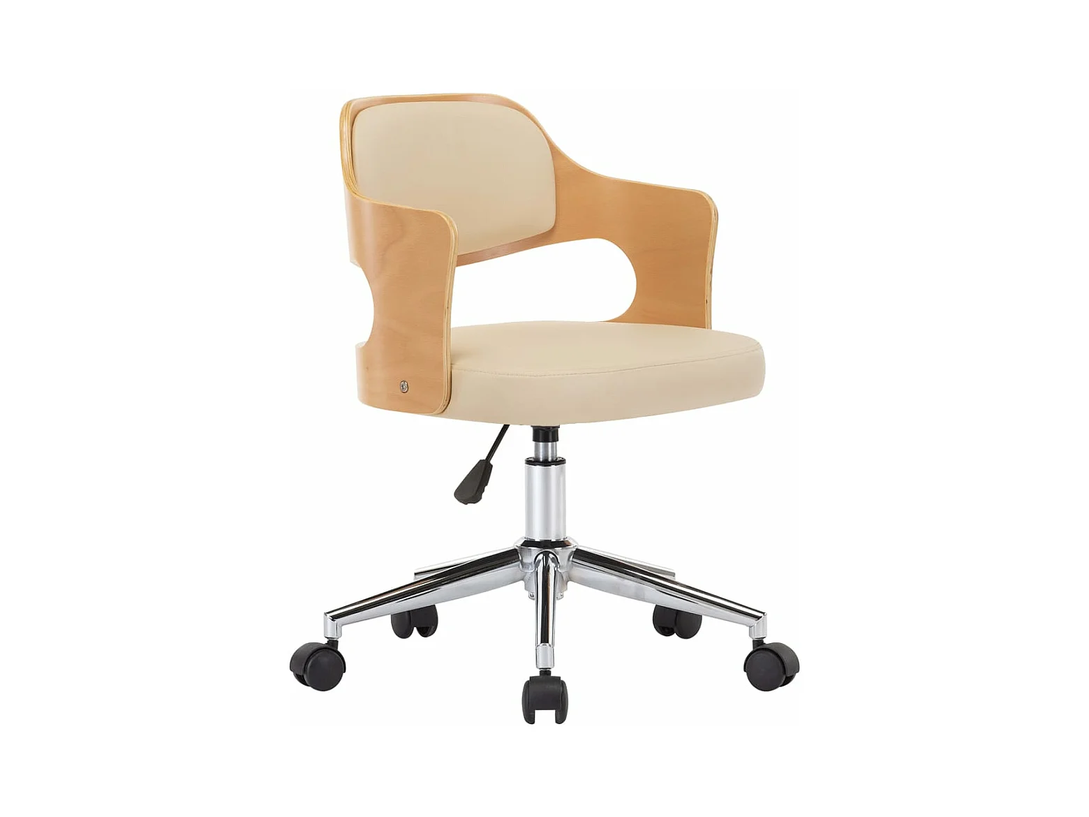 Sedia poltrona sedile girevole per ufficio computer studio legno curvato e similpelle panna 02_0024096