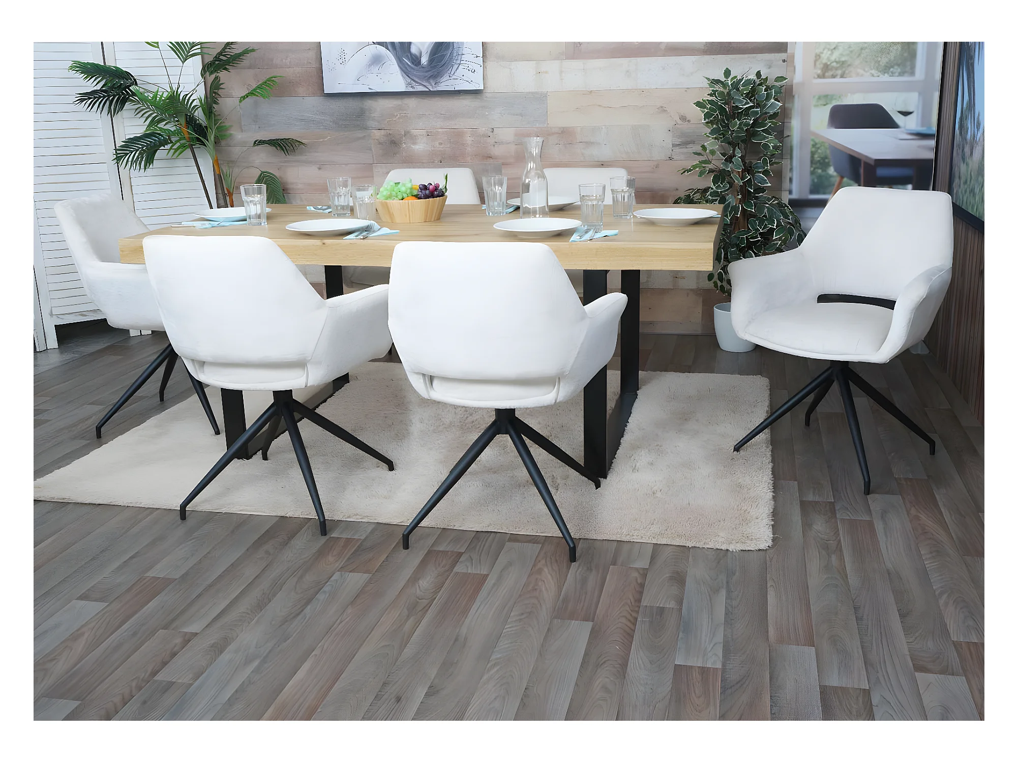 Sedia poltroncina con seduta girevole braccioli MCW-M53 tessuto avorio bianco