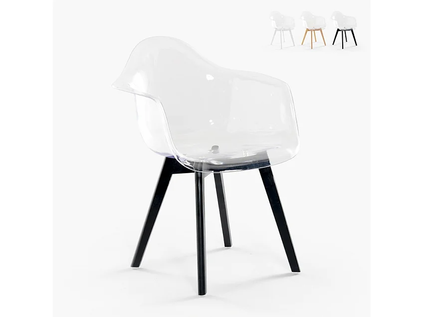 Sedia poltroncina moderna policarbonato trasparente gambe legno Arinor - Nero
