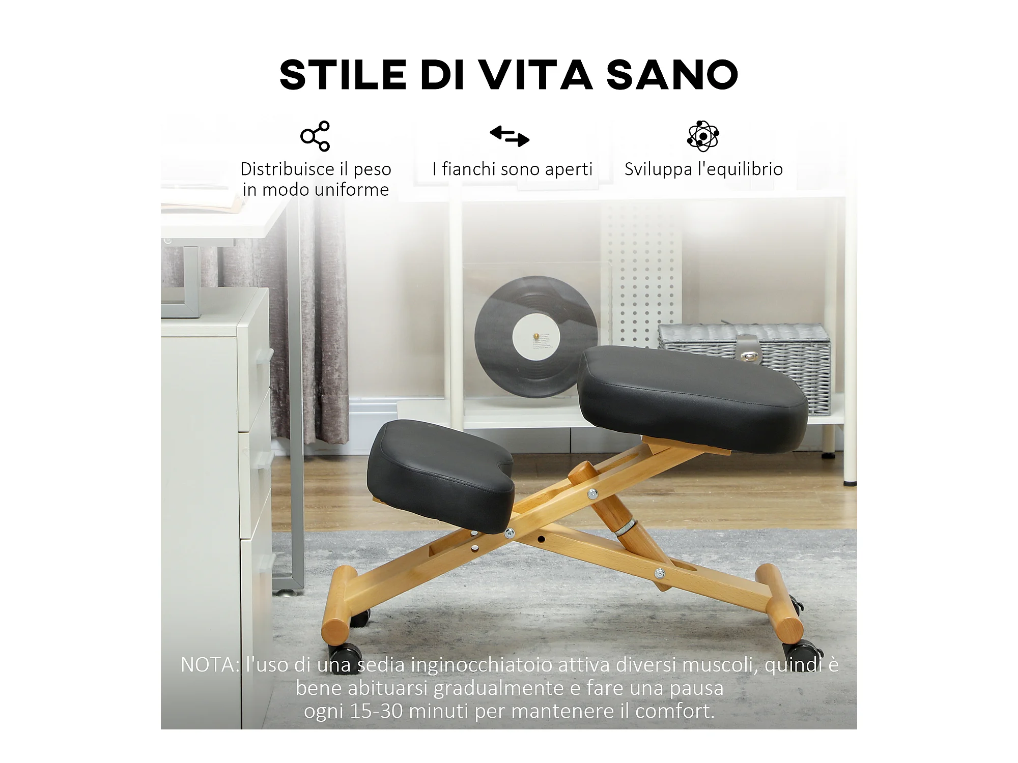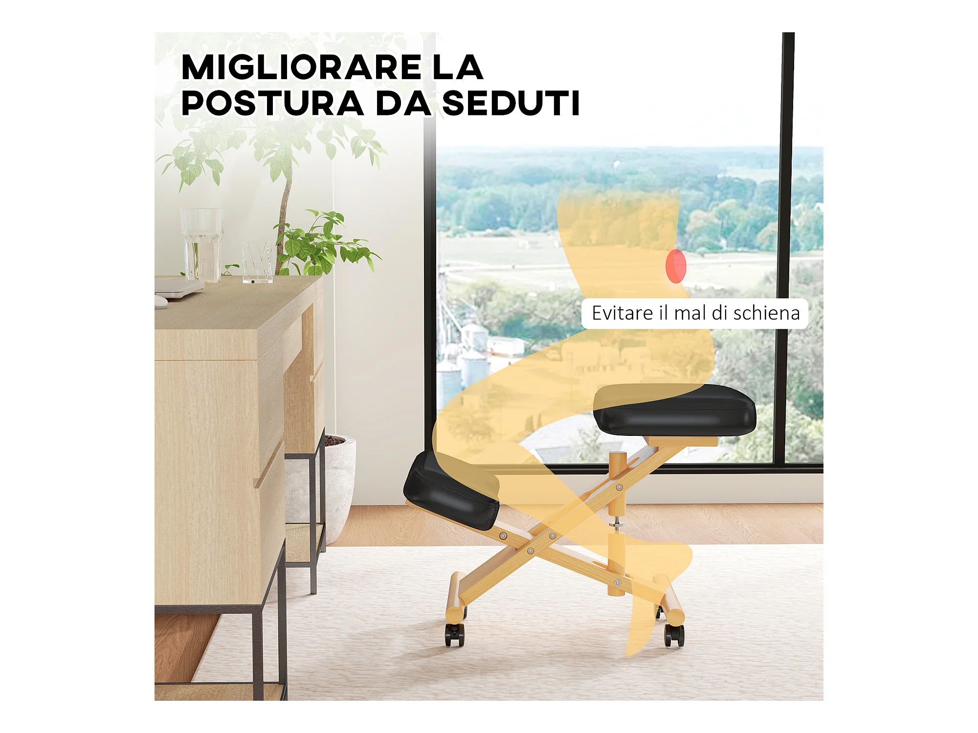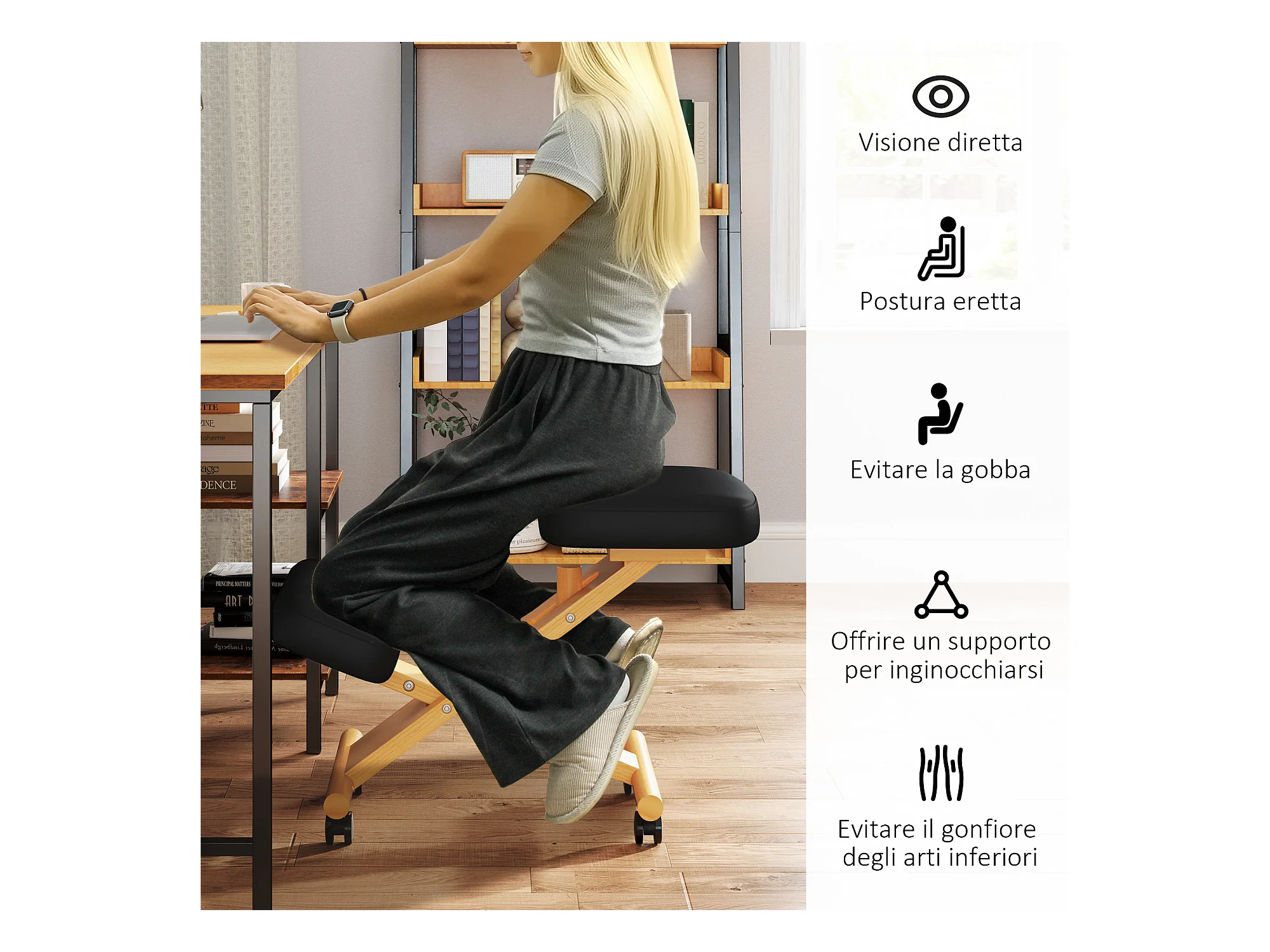 Sedia posturale con inginocchiatoio e altezza regolabile nero