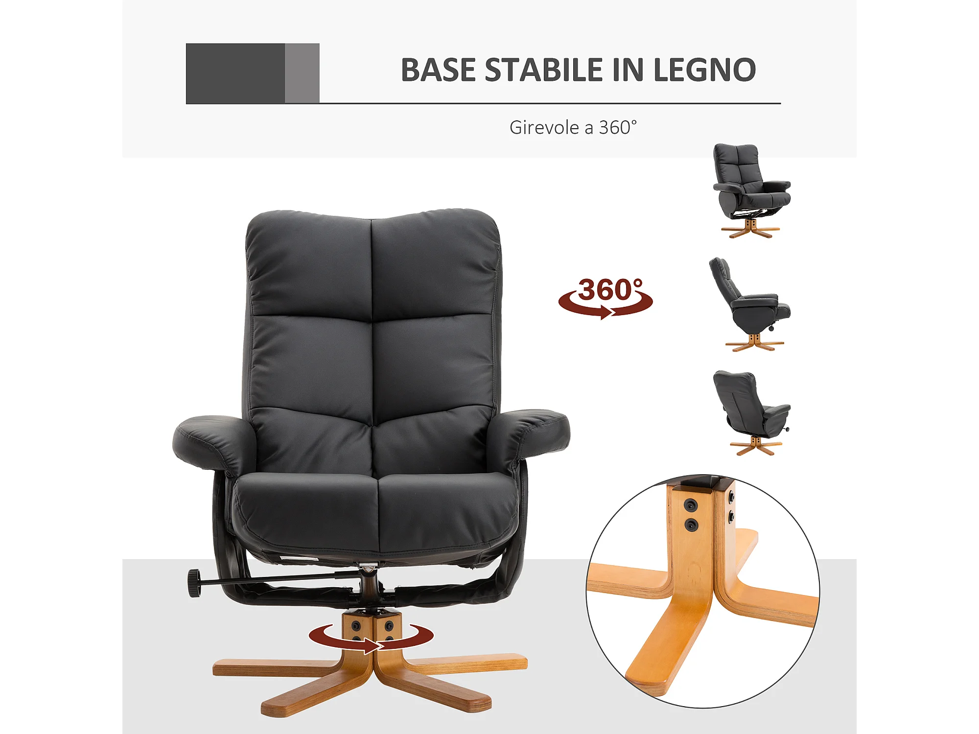 Sedia reclinabile e girevole con poggiapiedi contenitore nero