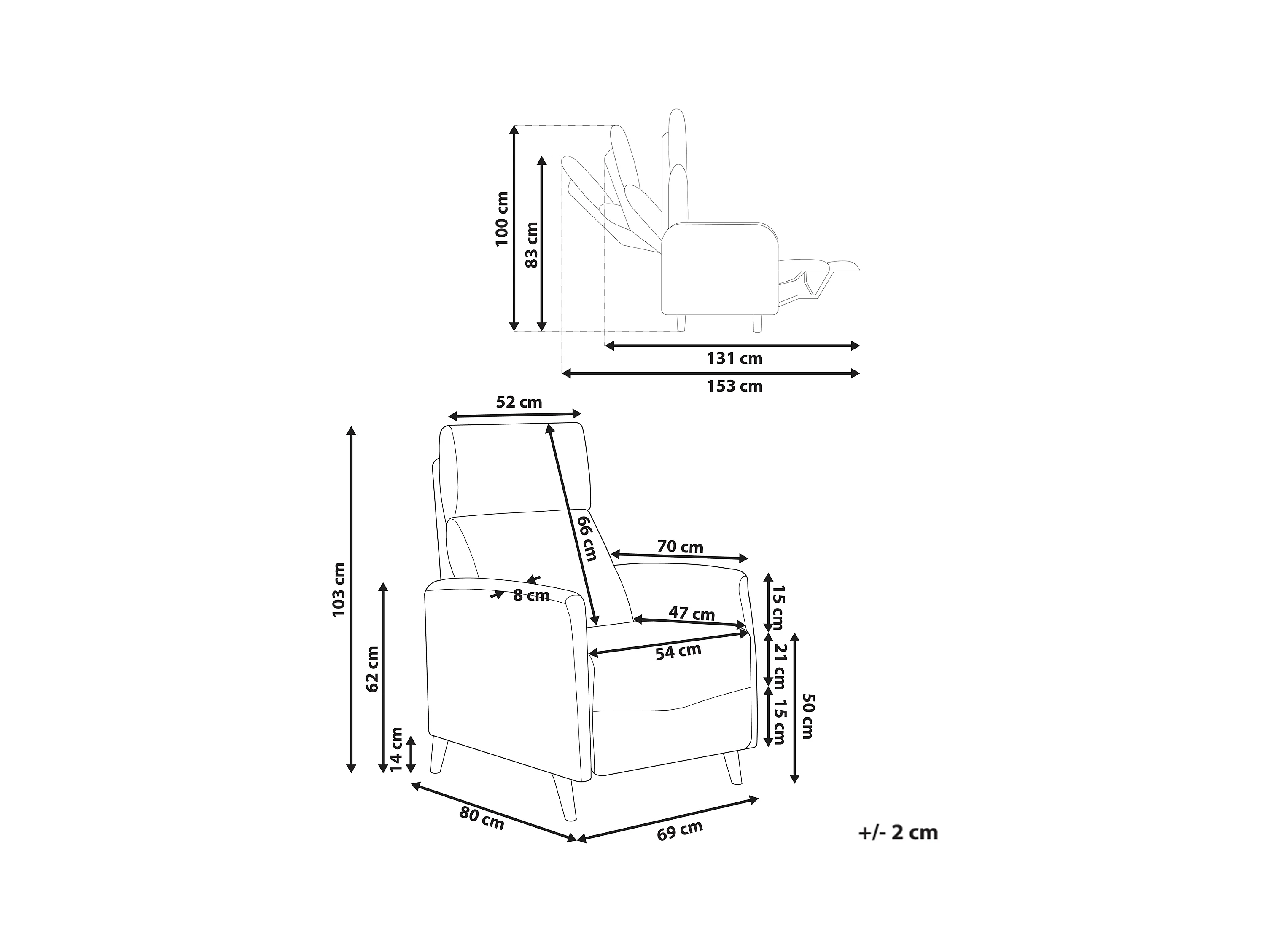 Poltrona relax con cuscino schienale, tessuto di lino, gambe in legno, crema (52,5x69x77 cm)