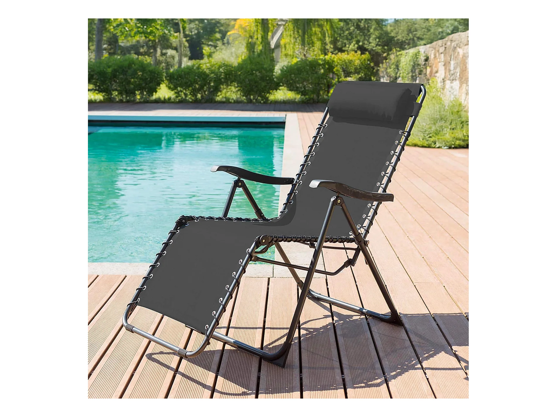 Sdraio sedia a sdraio prendisole lettino da giardino terrazza mobili da esterno acciaio e Textilene nero 02_0012245