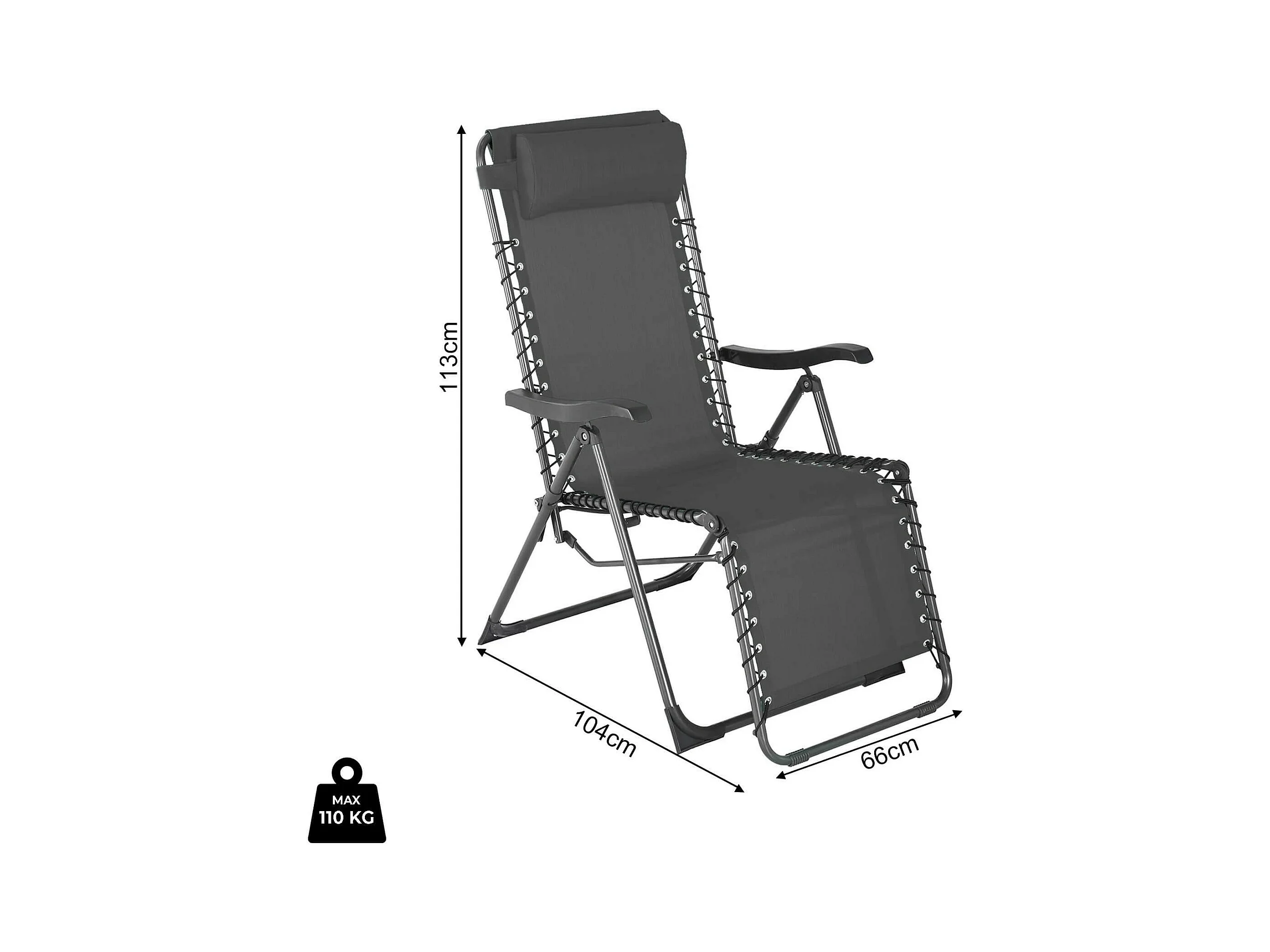 Sedia a Sdraio Pieghevole Rebecca Mobili Ukpa 88x63x83 Poliestere Acciaio Grigio Scuro