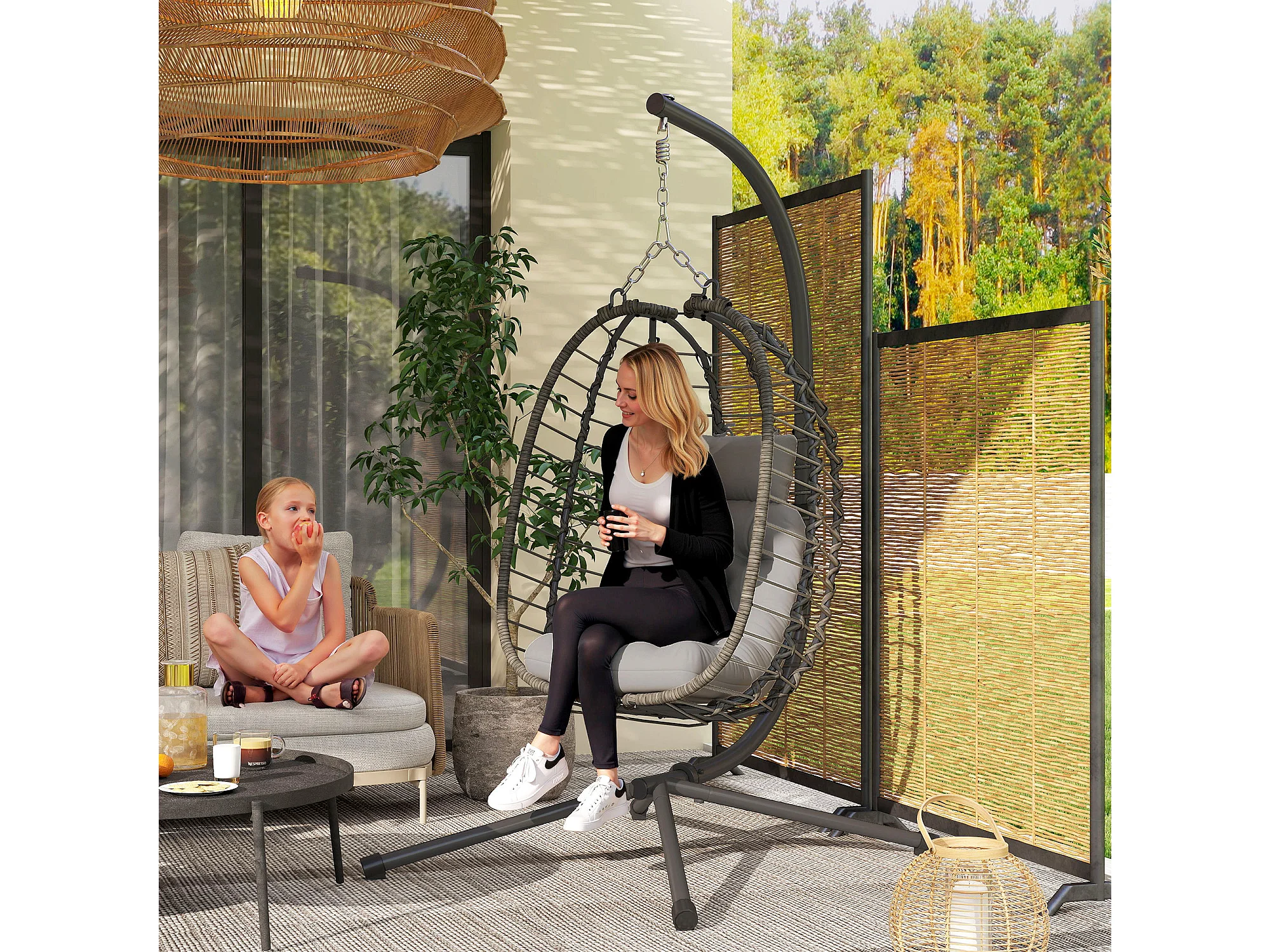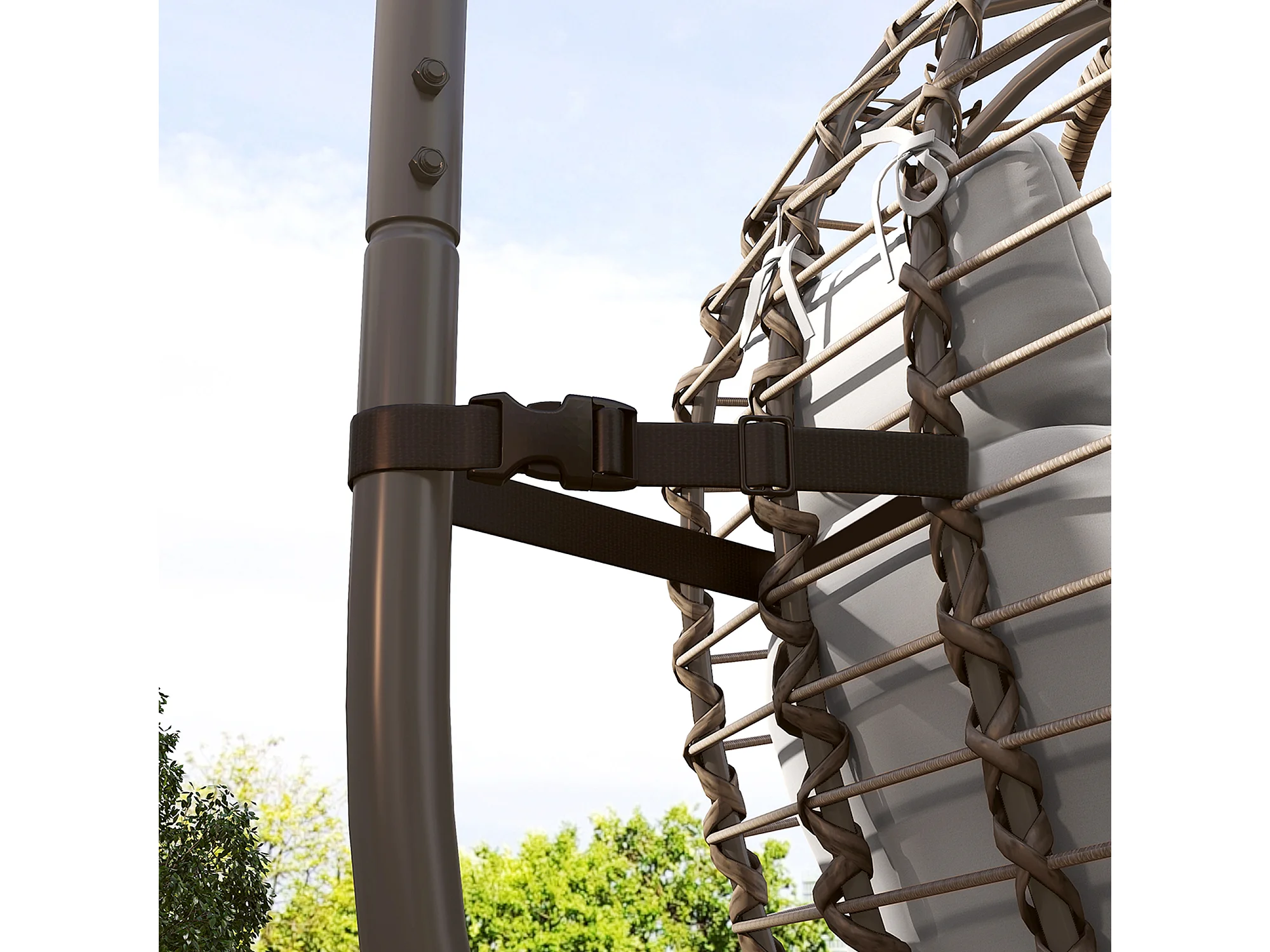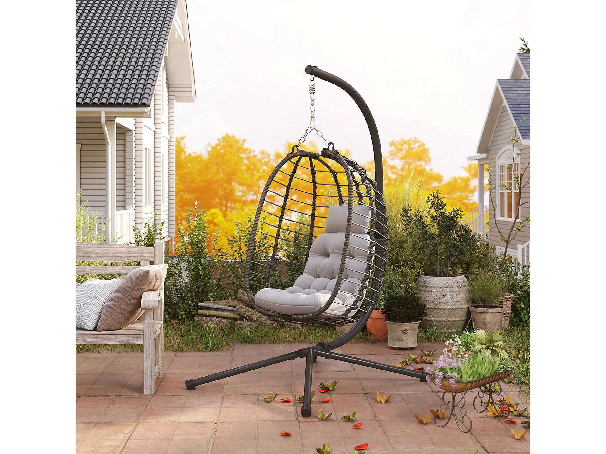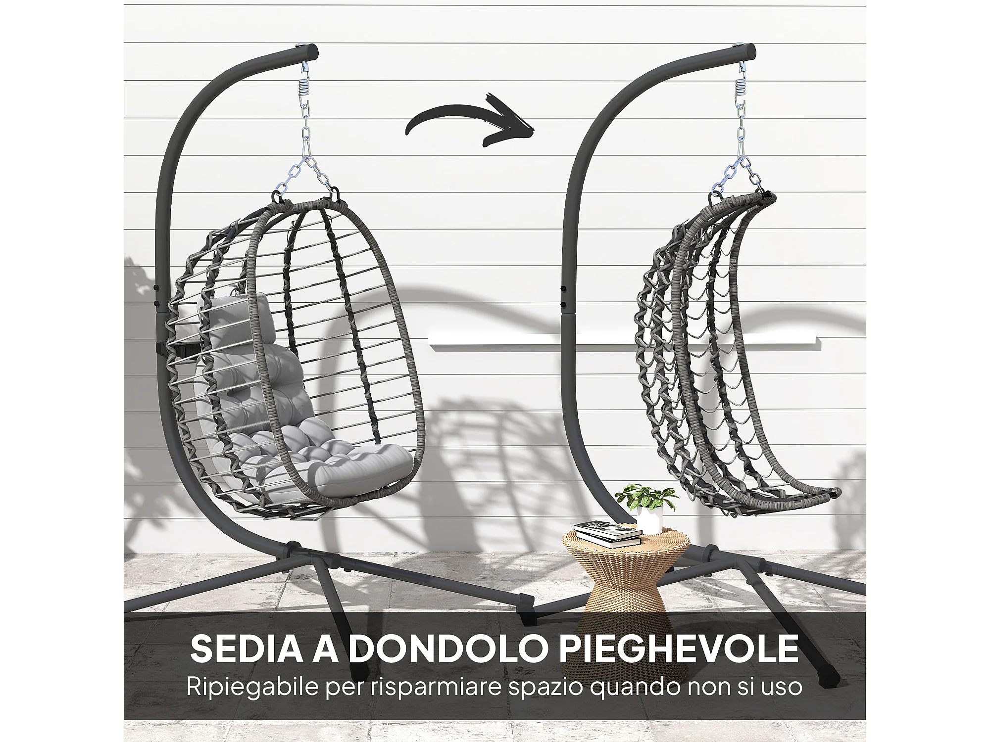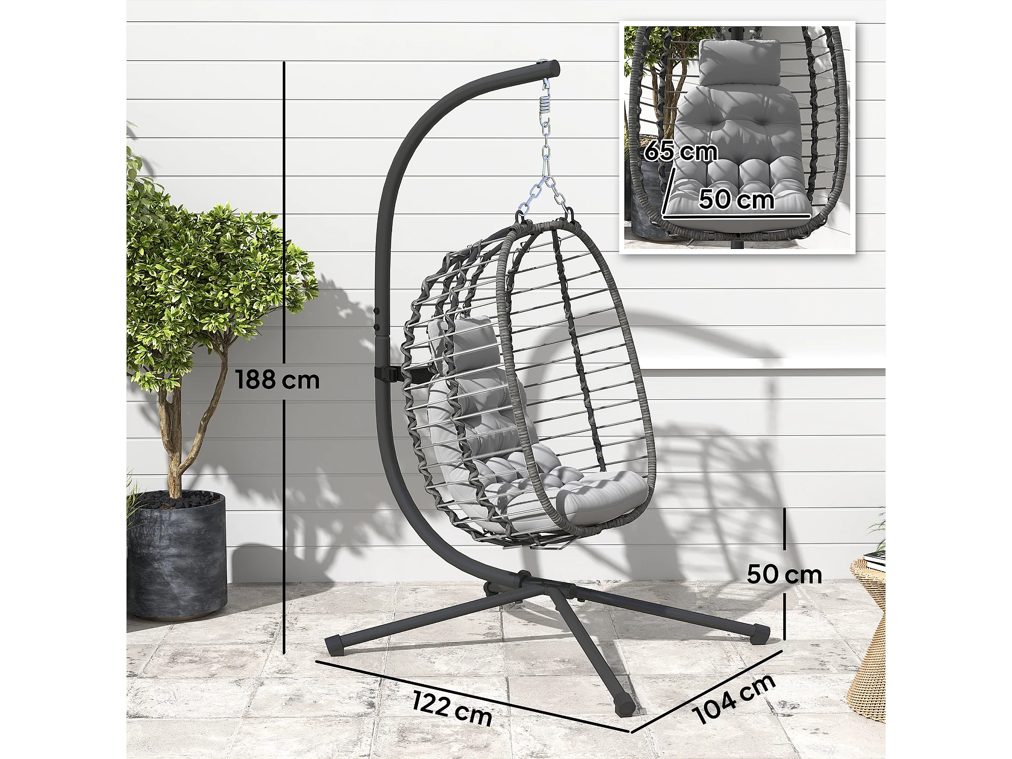 Sedia sospesa a uovo con cuscino e altezza regolabile in rattan grigio