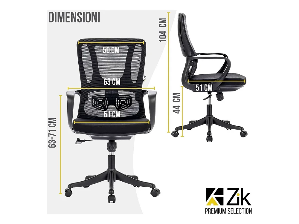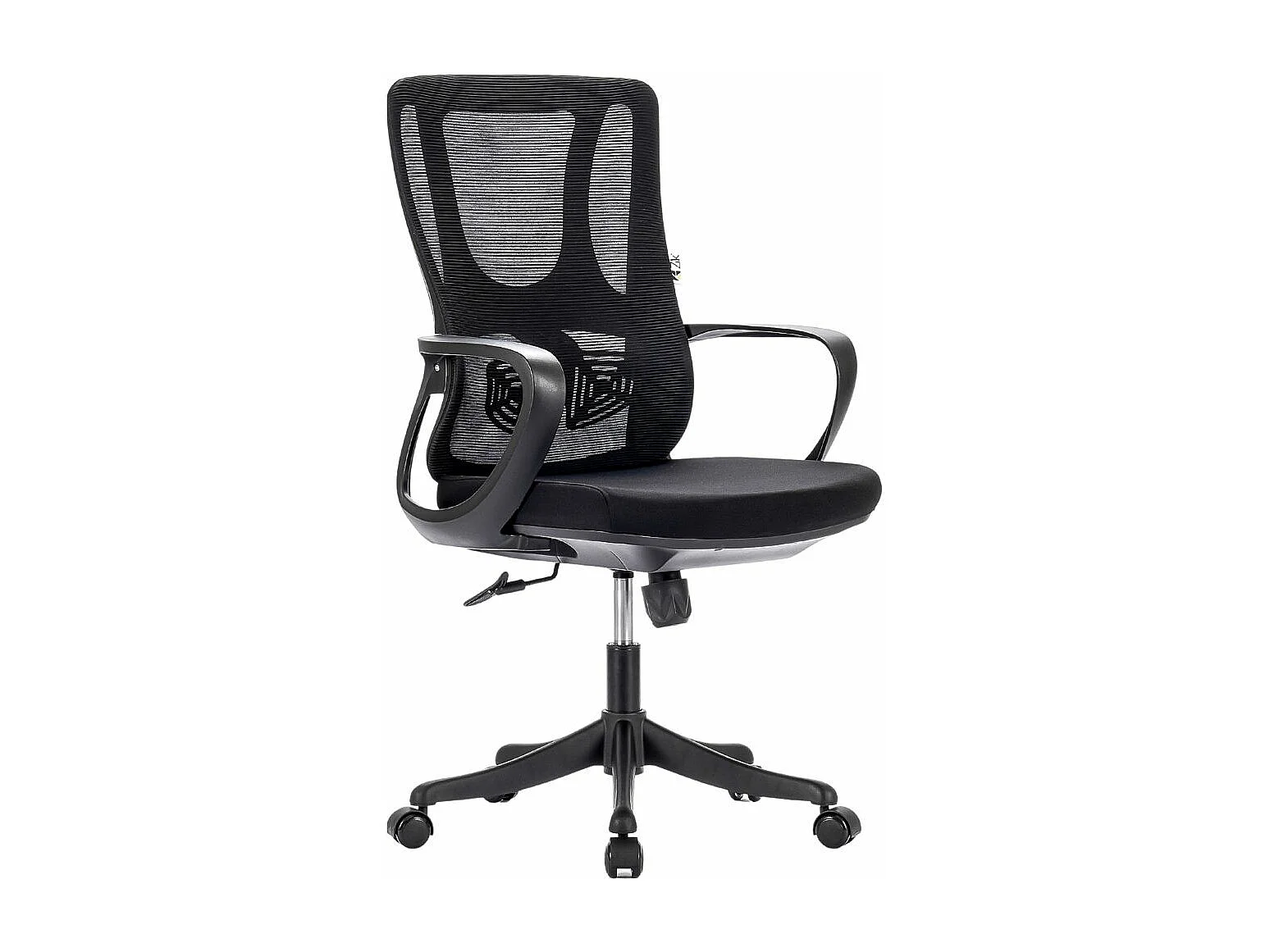 Sedia Ufficio Ergonomica Poltrona Girevole con Braccioli, Supporto Lombare, Oscillante, Regolabile in Tessuto - Nero