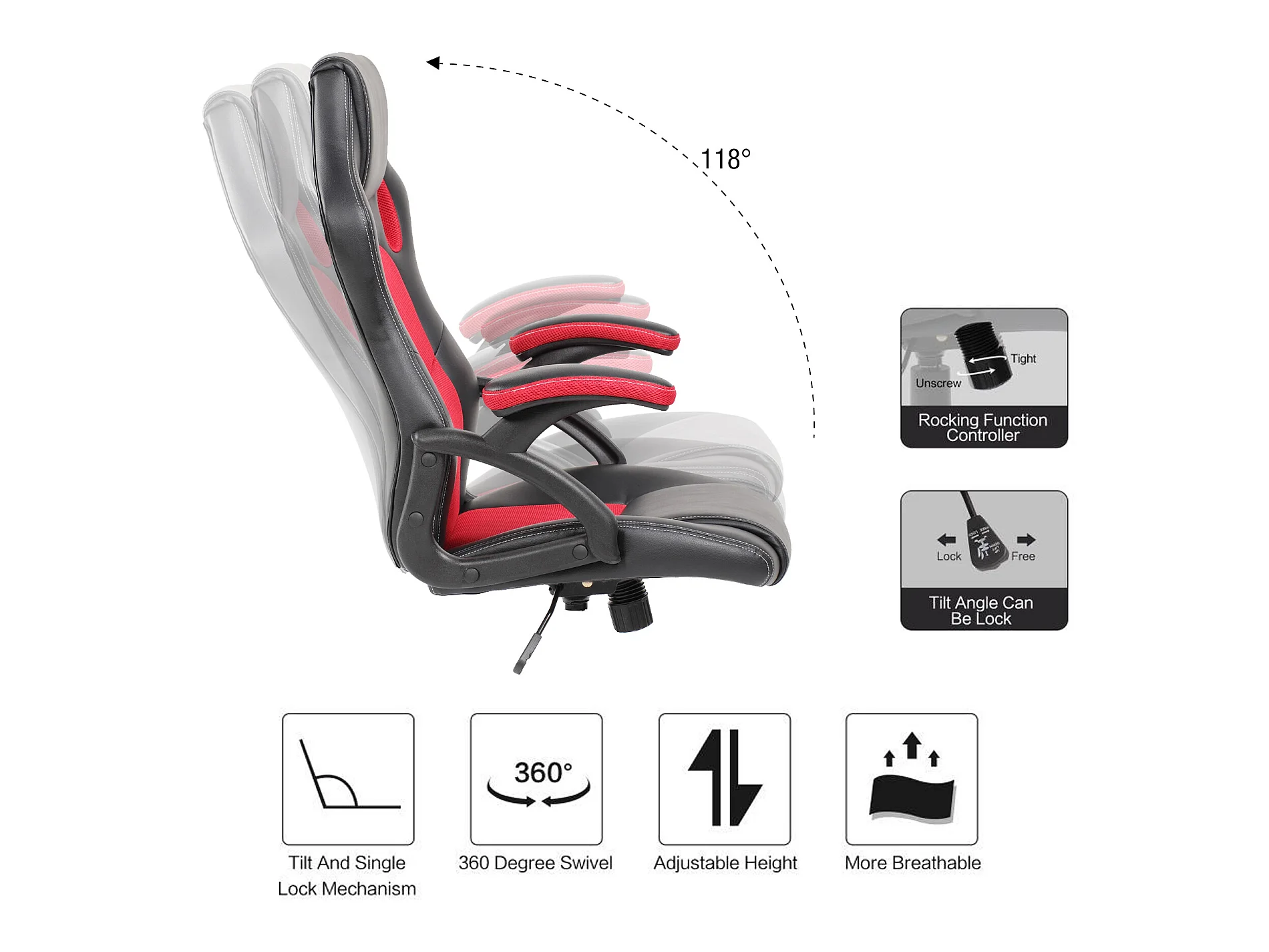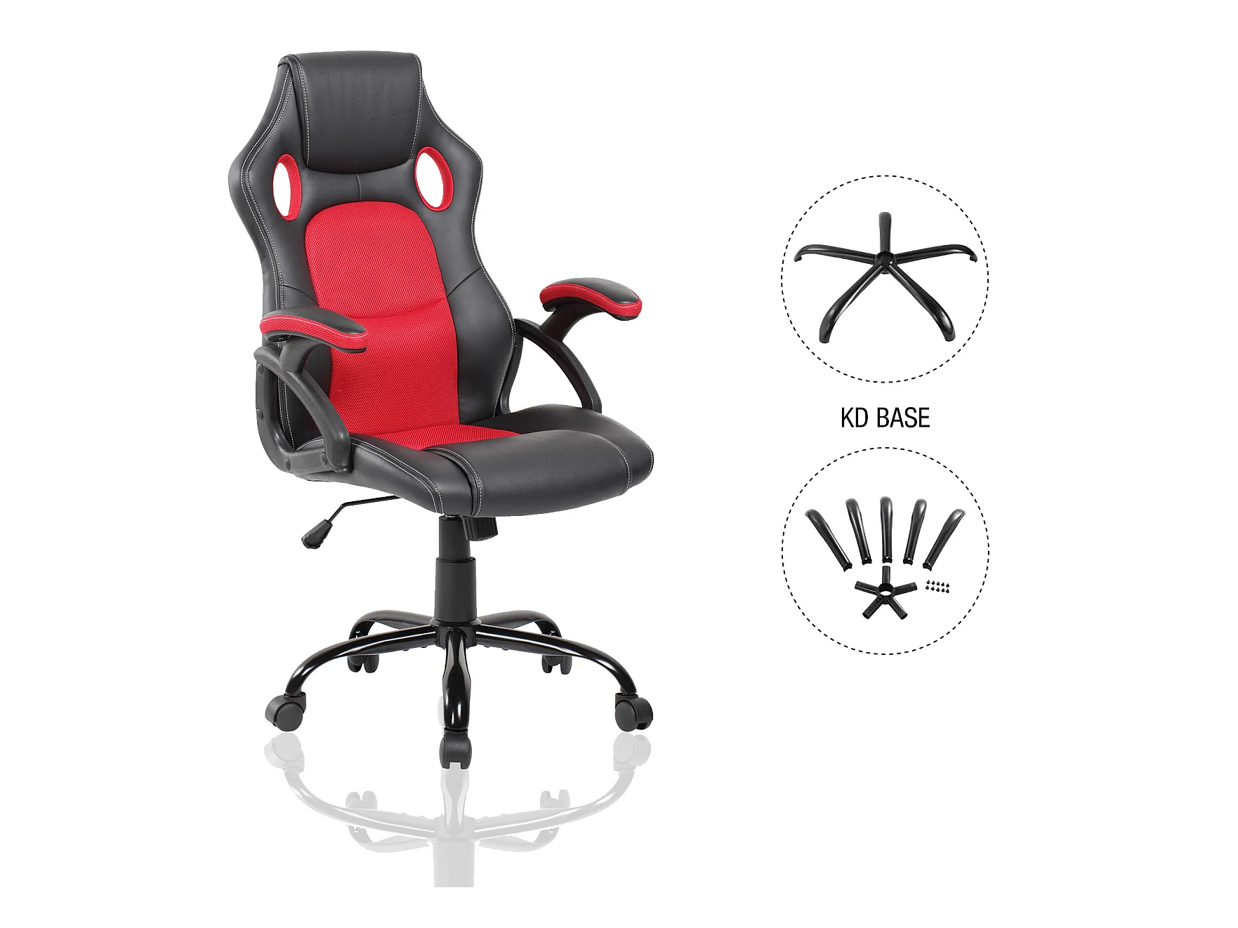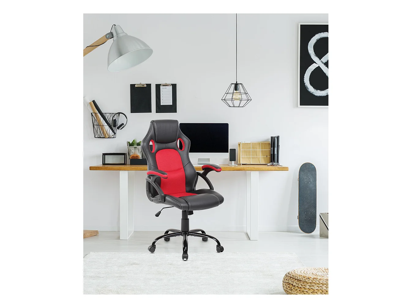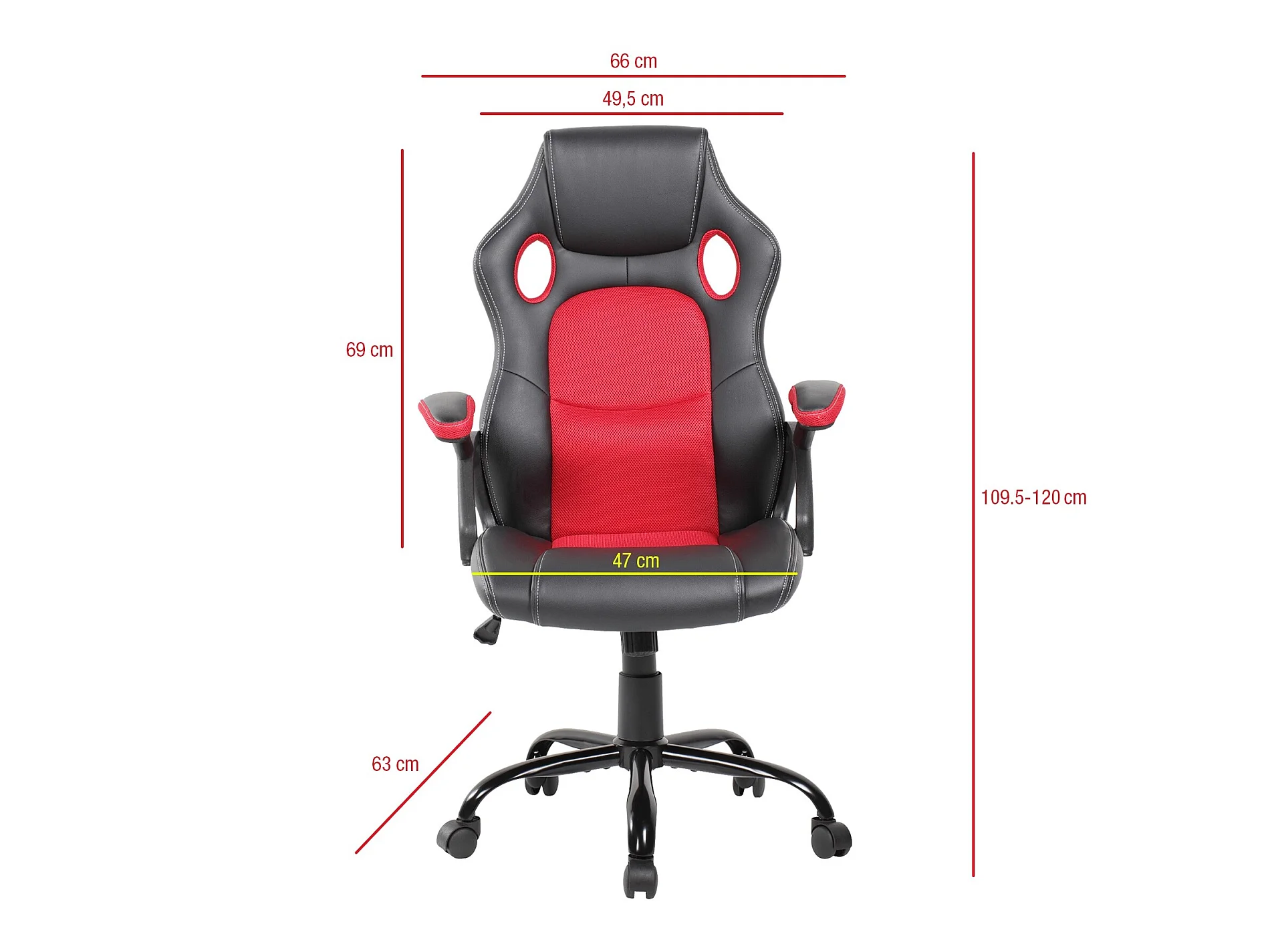 Sedia da gaming regolabile in altezza - similpelle - nero e rosso - LINE