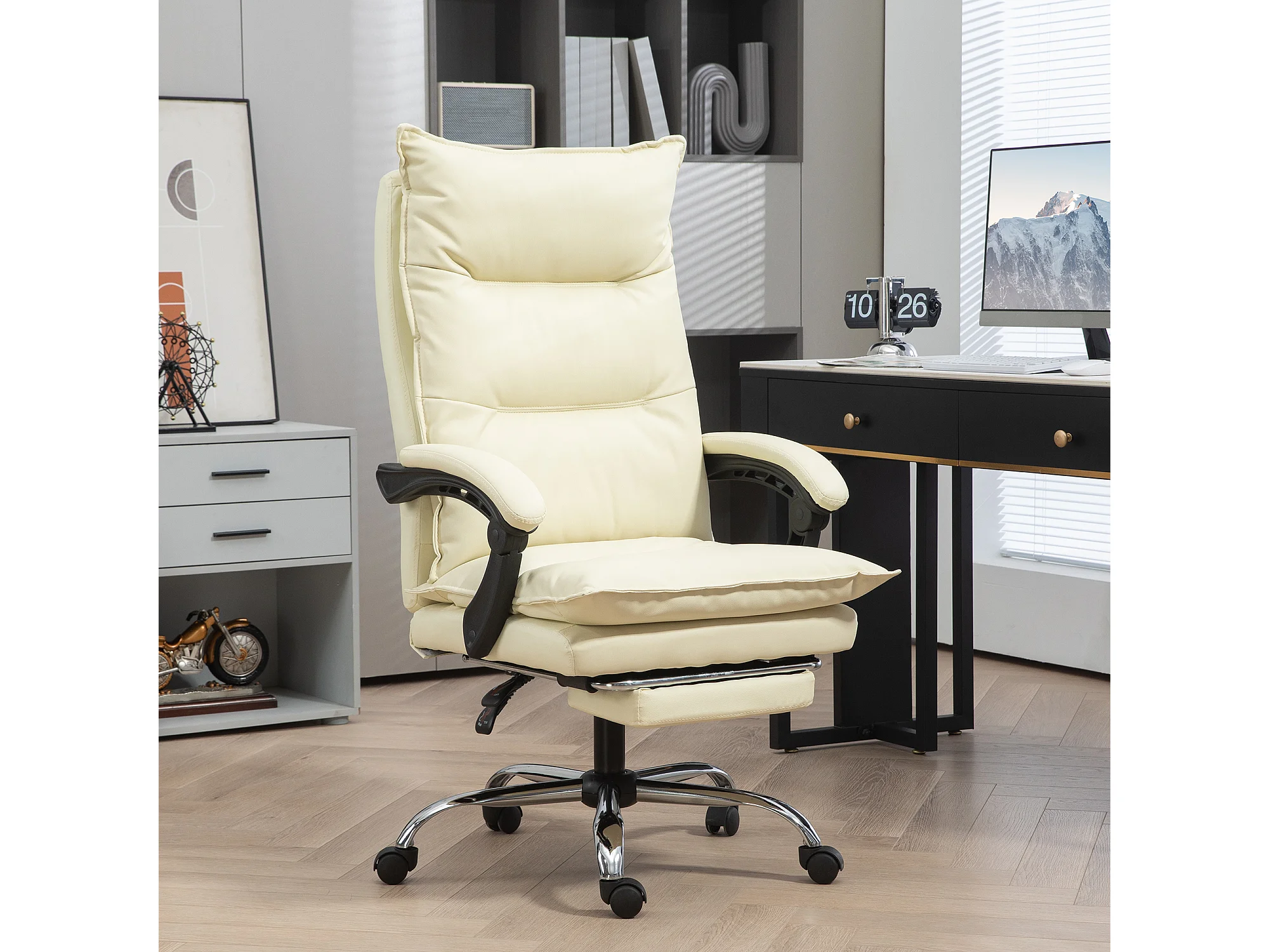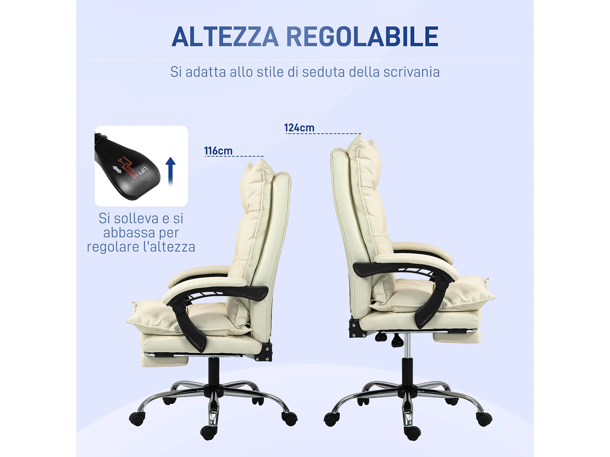 Sedia ufficio reclinabile con poggiapiedi in finta pelle beige
