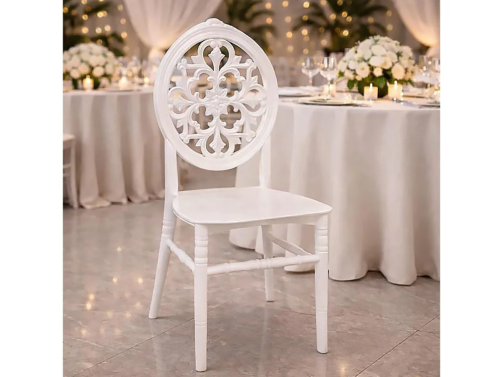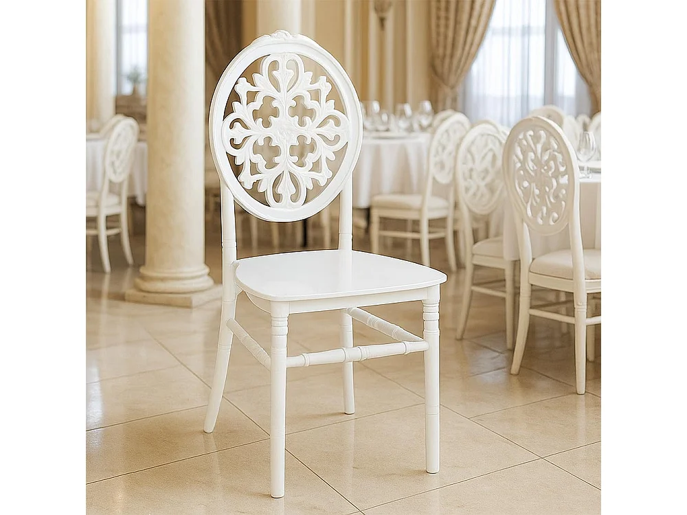 Sedia Venus in plastica polipropilene bianco con schienale decorato impilabile