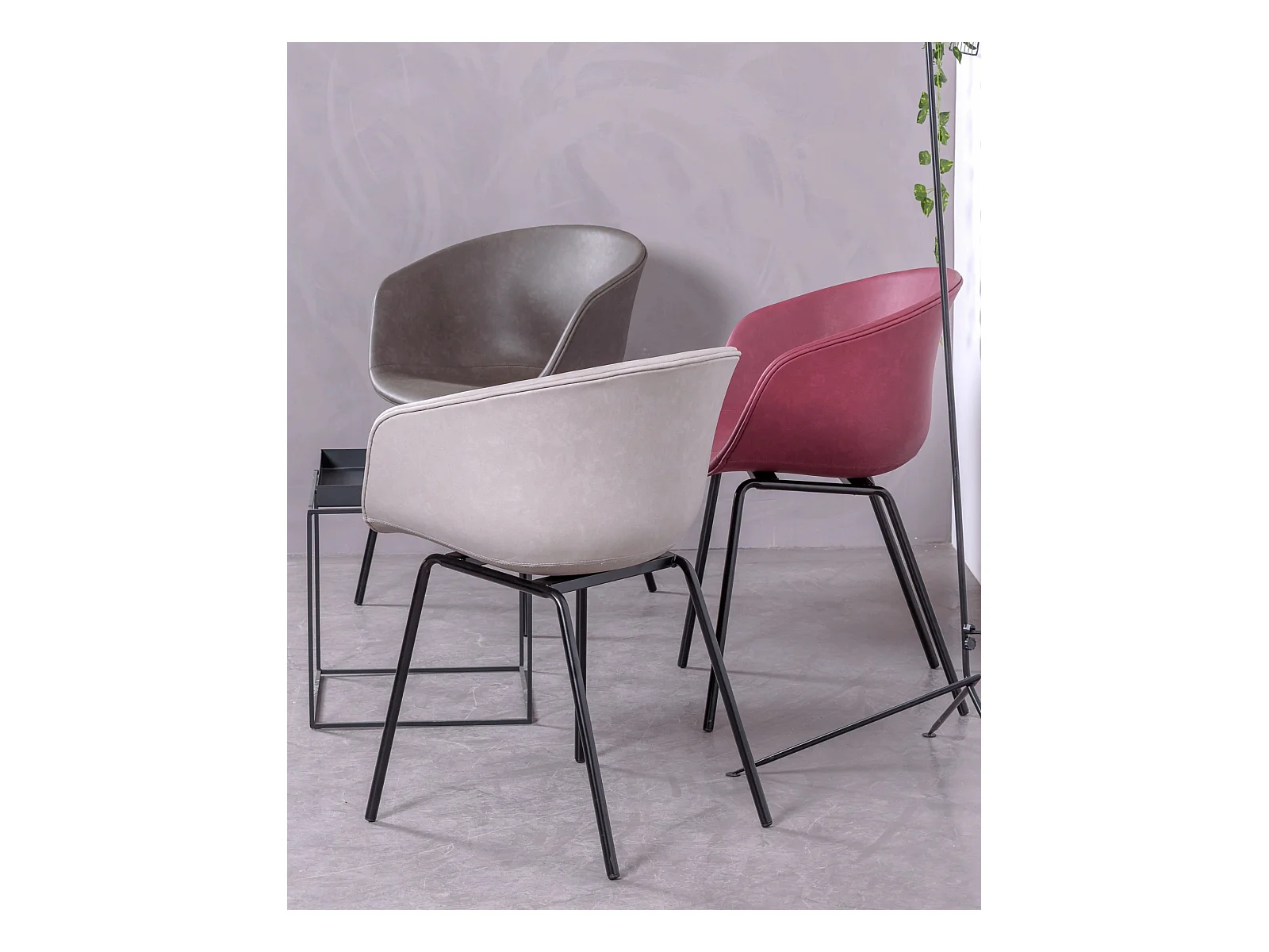 Sedia vintage con braccioli rivestita in similpelle cerata - Denver - Grigio chiaro