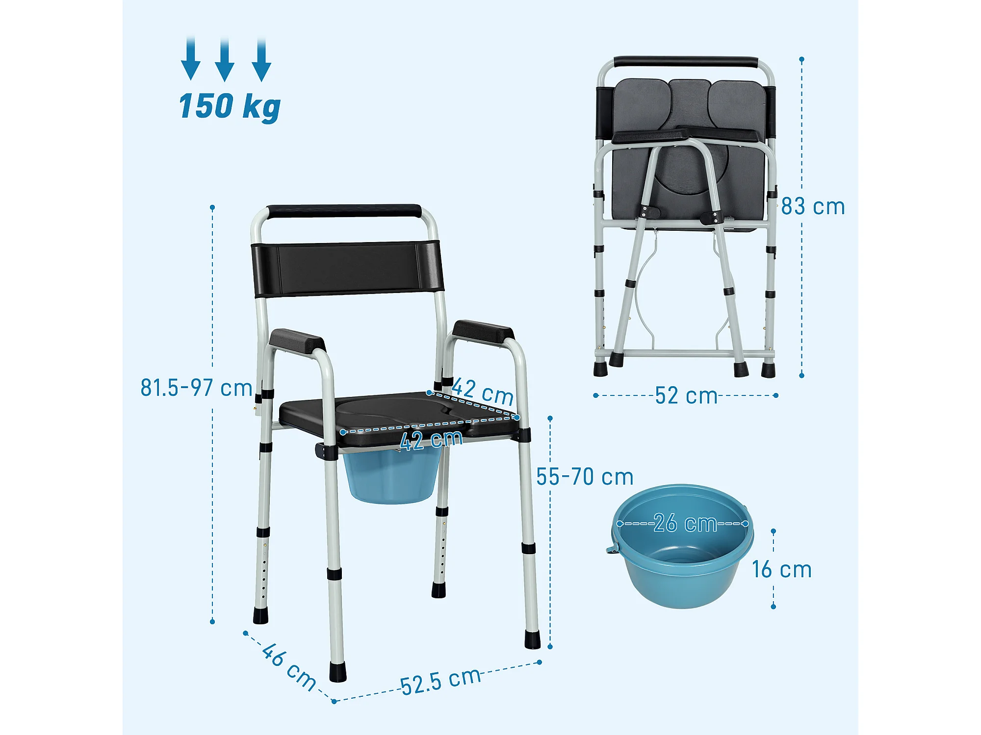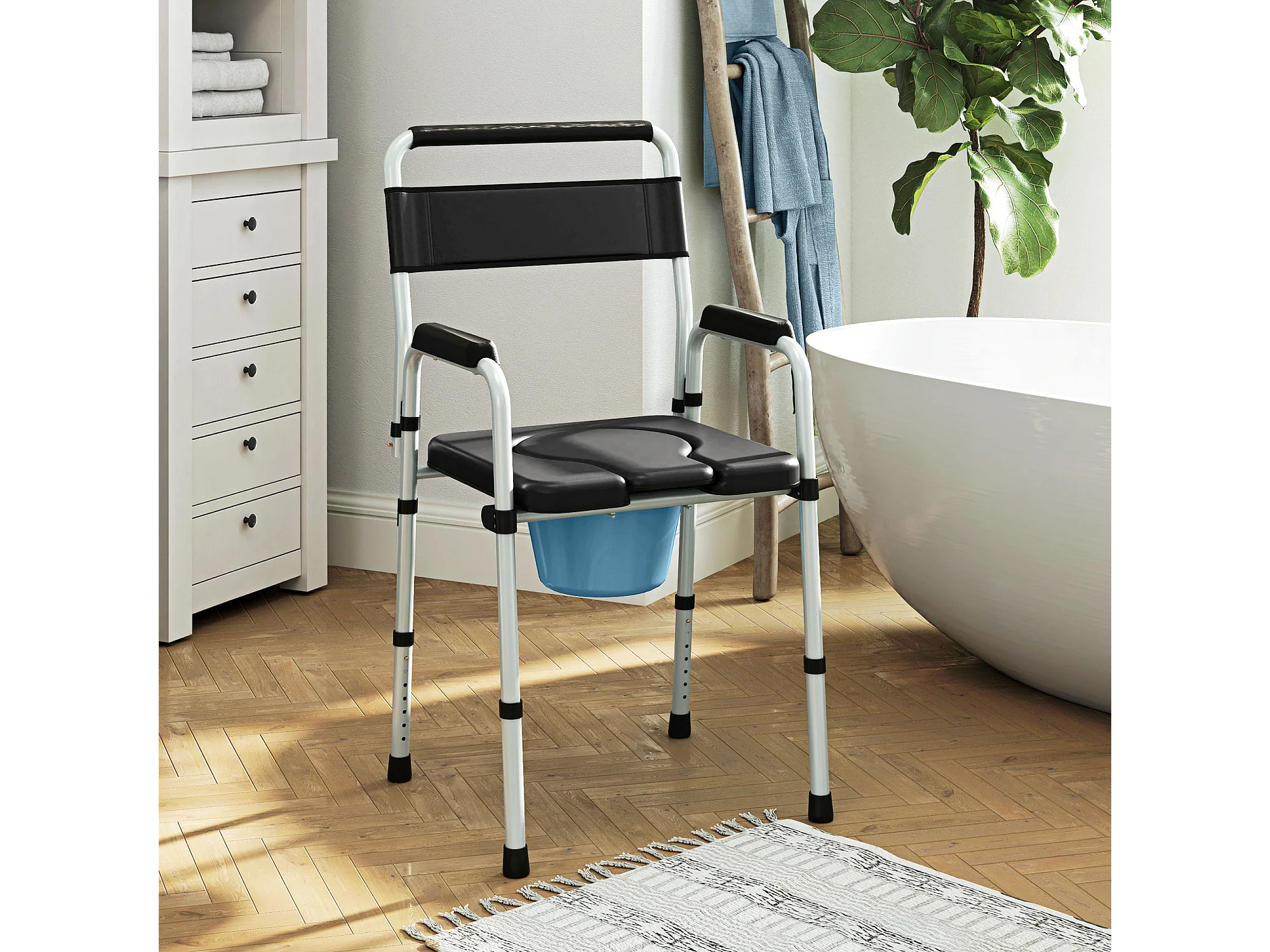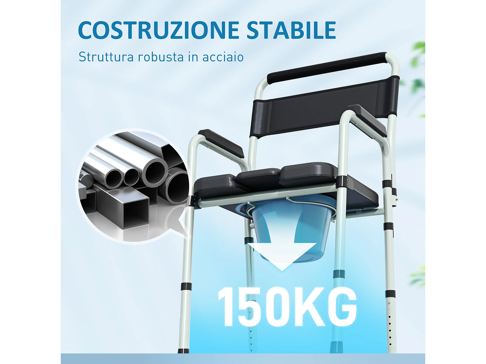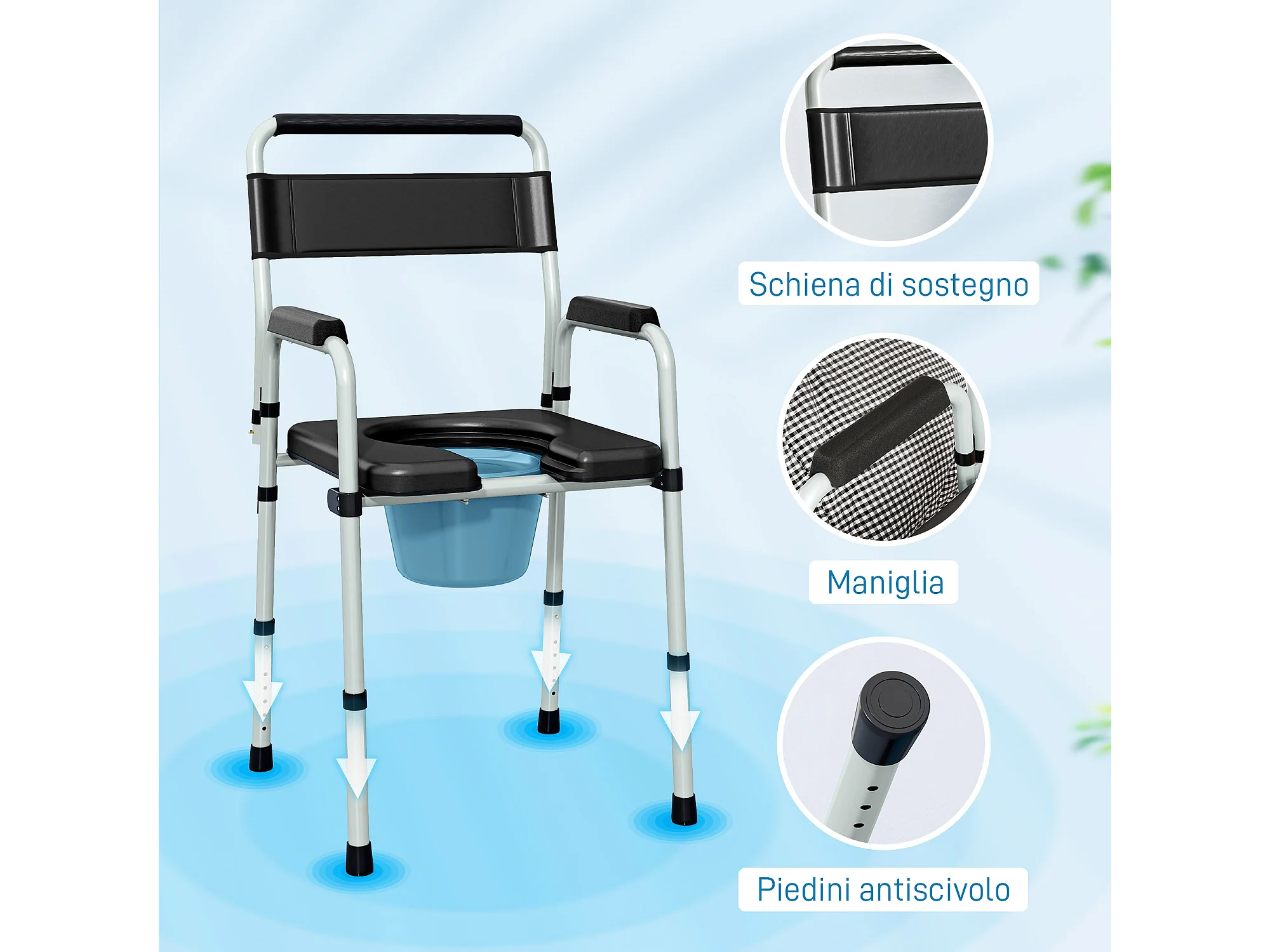Sedia WC Pieghevole con Vaso Rimovibile per Anziani e Disabili