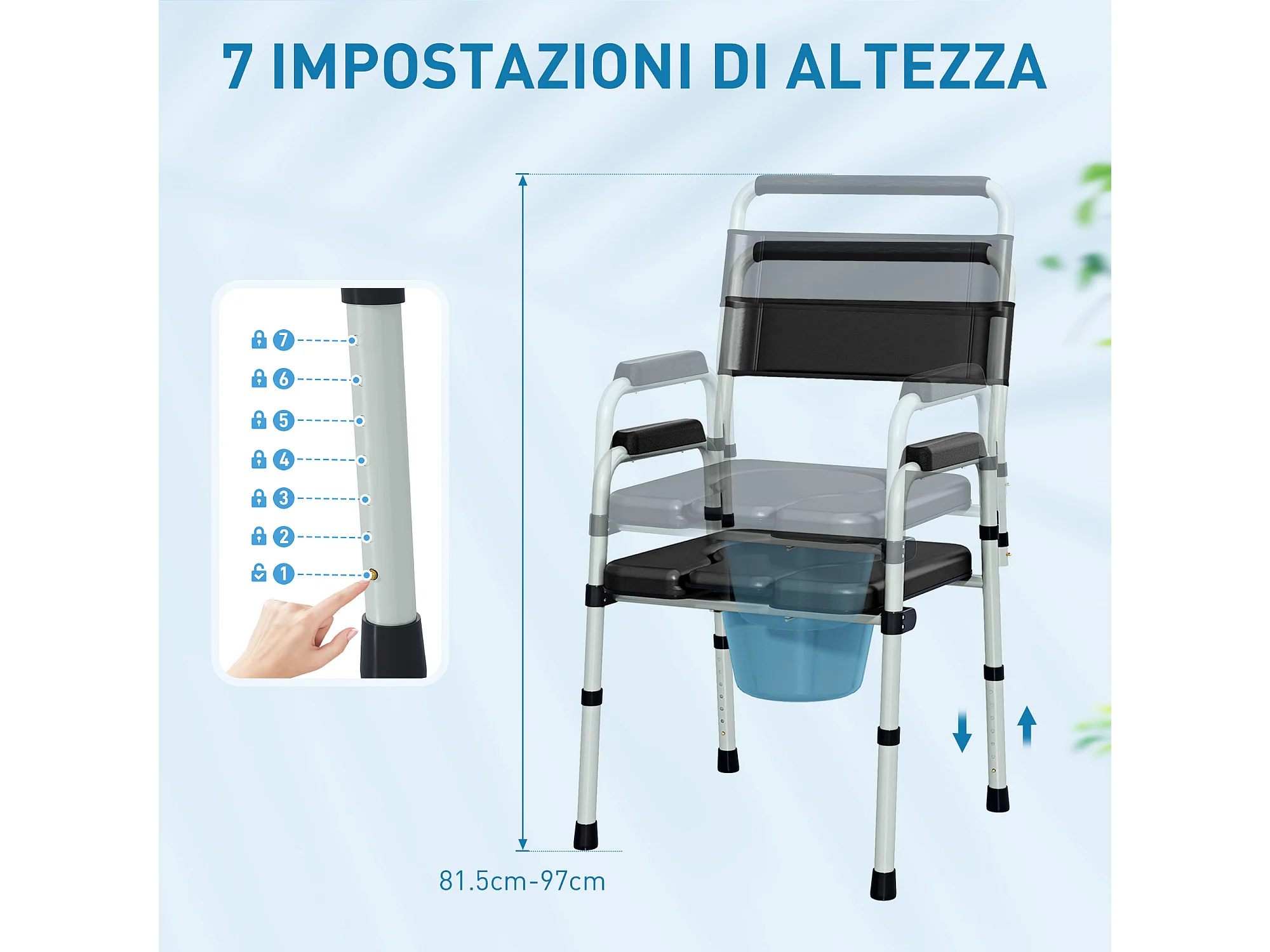 Sedia wc regolabile in altezza su 7 livelli e pieghevole nera