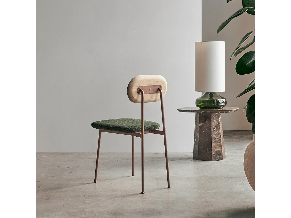 Sedia rivestita in tessuto per sala da pranzo colore verde. Collezione HARDIN