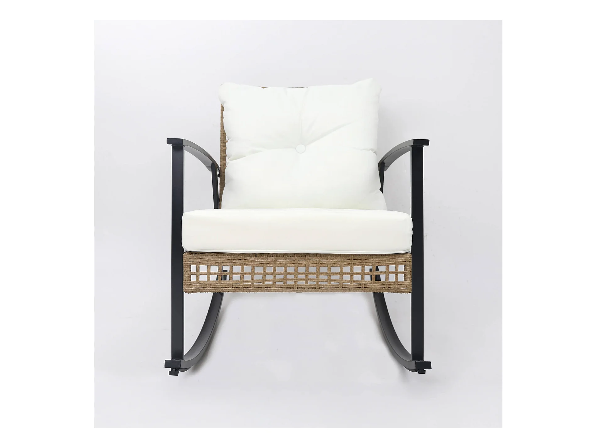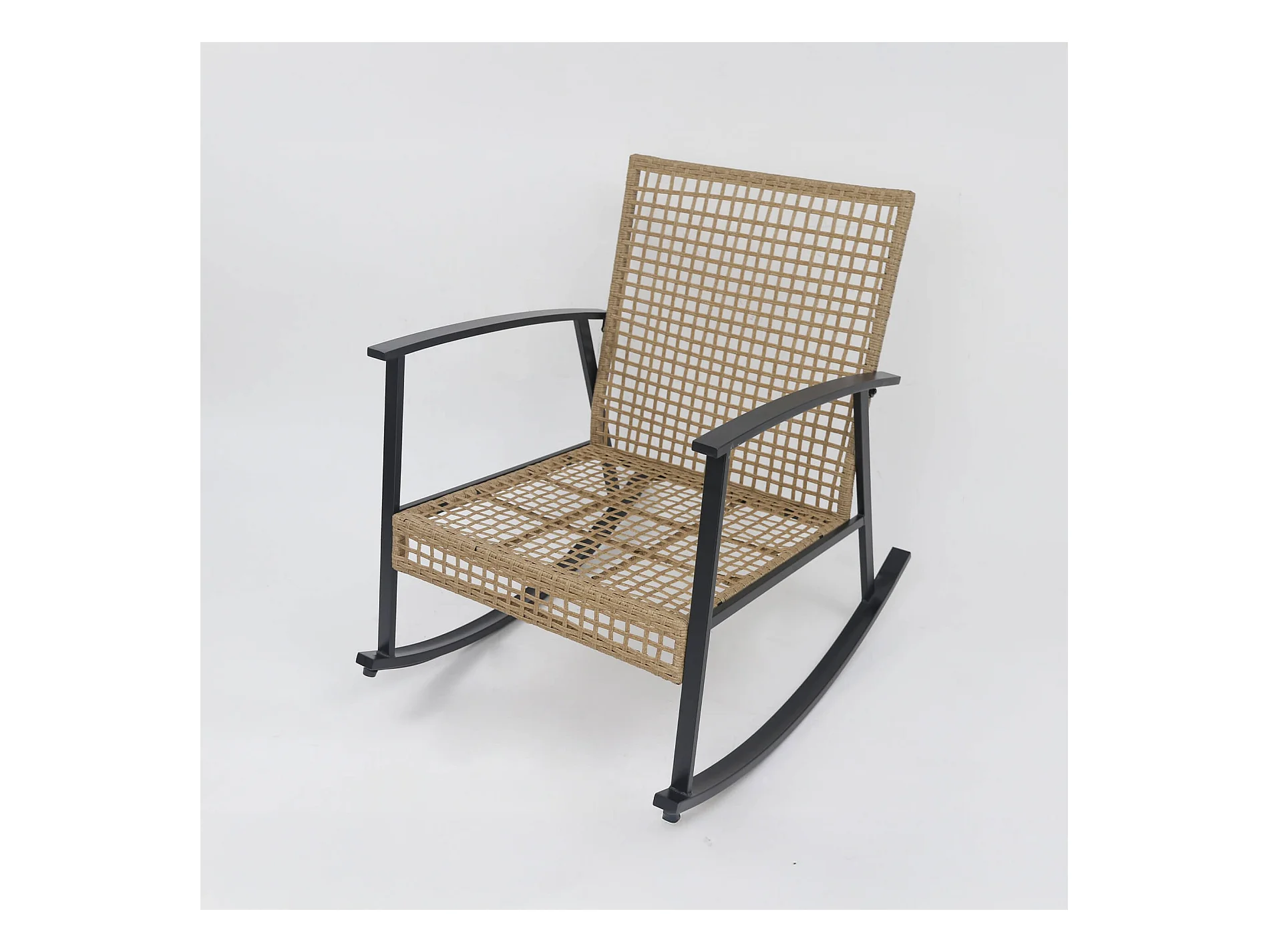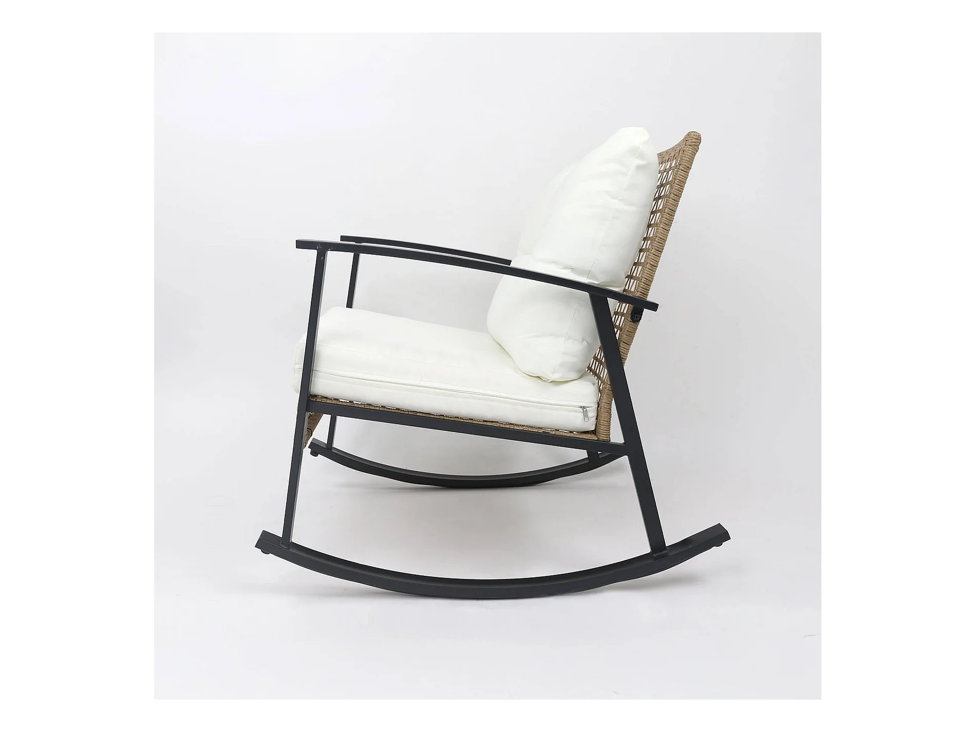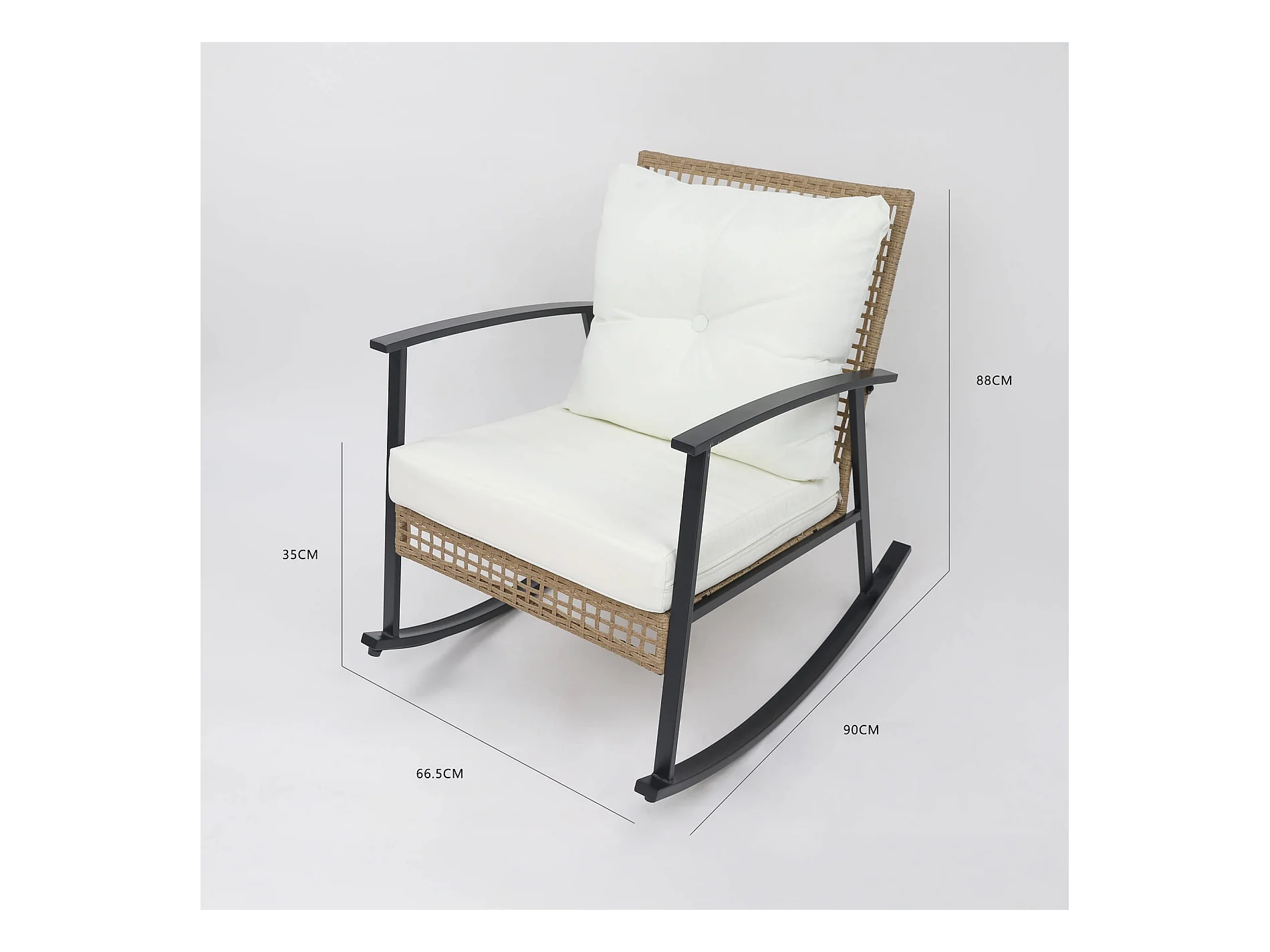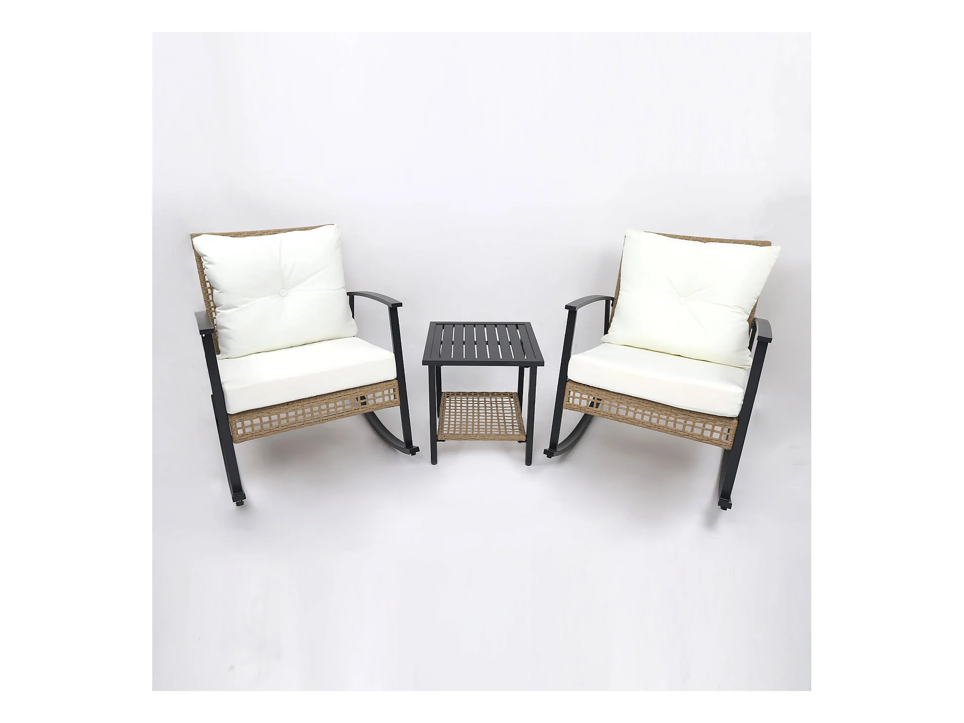 Sedie a Dondolo con Tavolino Rebecca Mobili Niangon 88x66,5x90 Acciaio Polyrattan Marrone Nero SET 3 pz