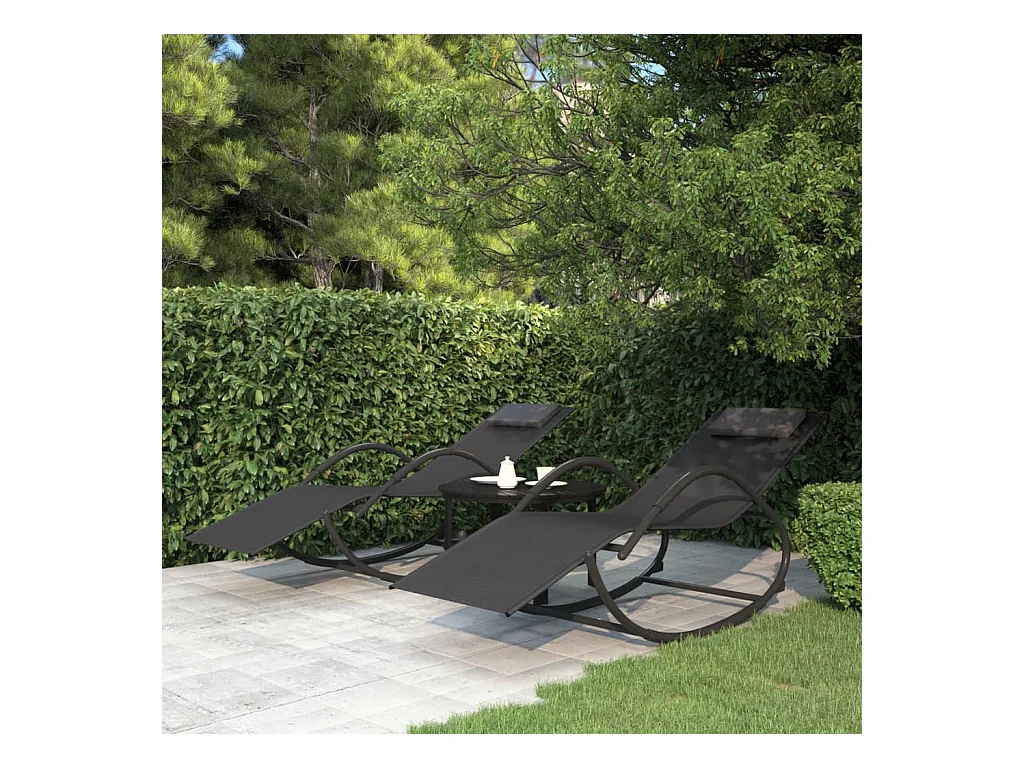 Sedie a sdraio a dondolo 2 pz. Acciaio Nero e Textilene