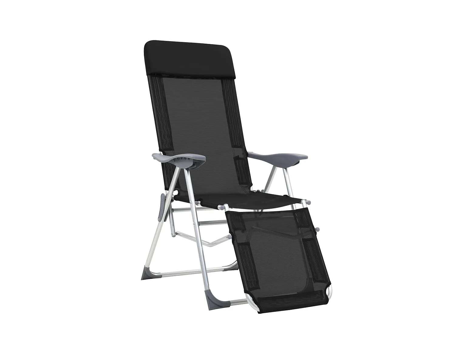Sedie da campeggio pieghevoli e poggiapiedi 2 pezzi in Textilene nero