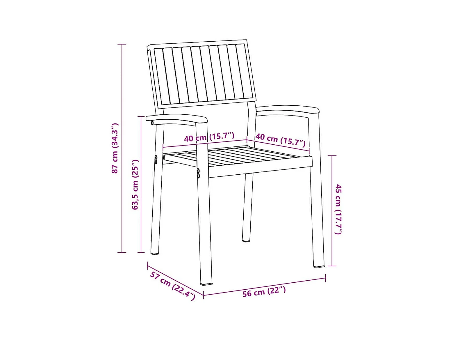 sedie da esterno impilabili in legno massello di acacia e metallo grigio
