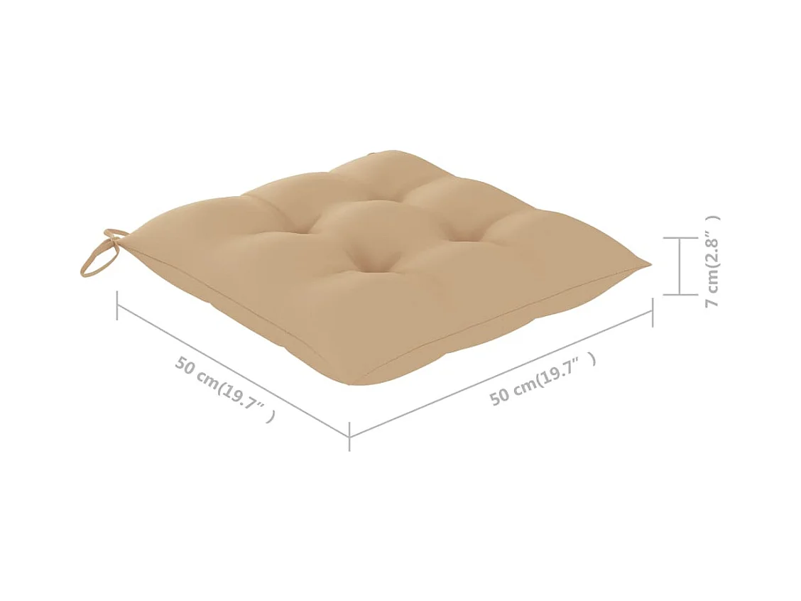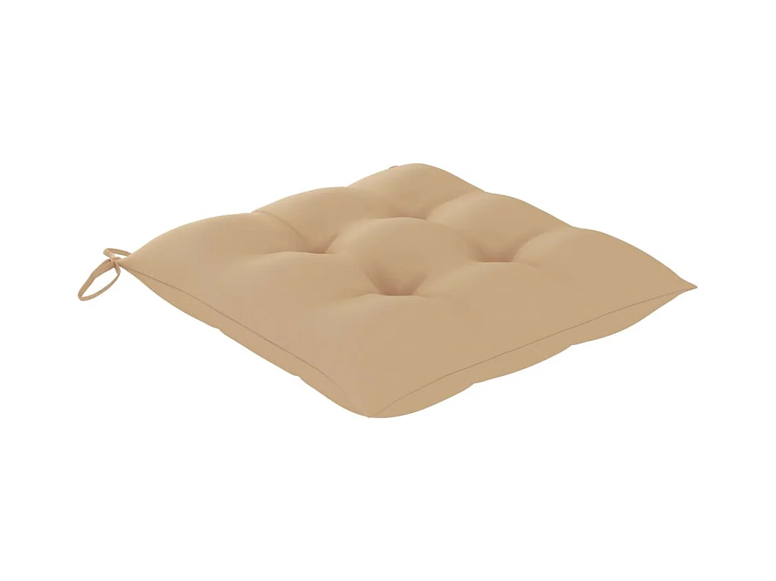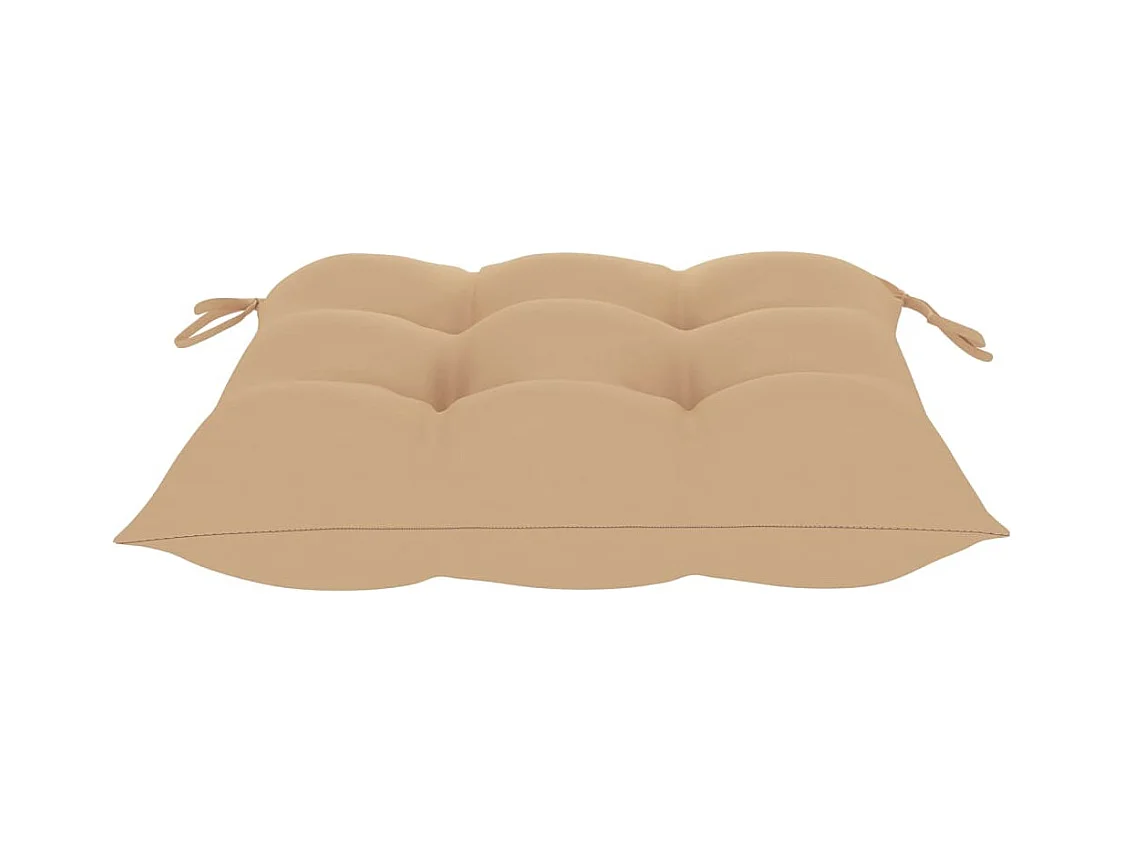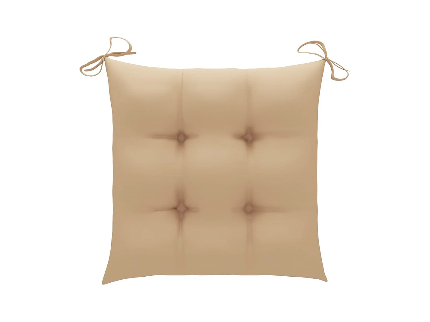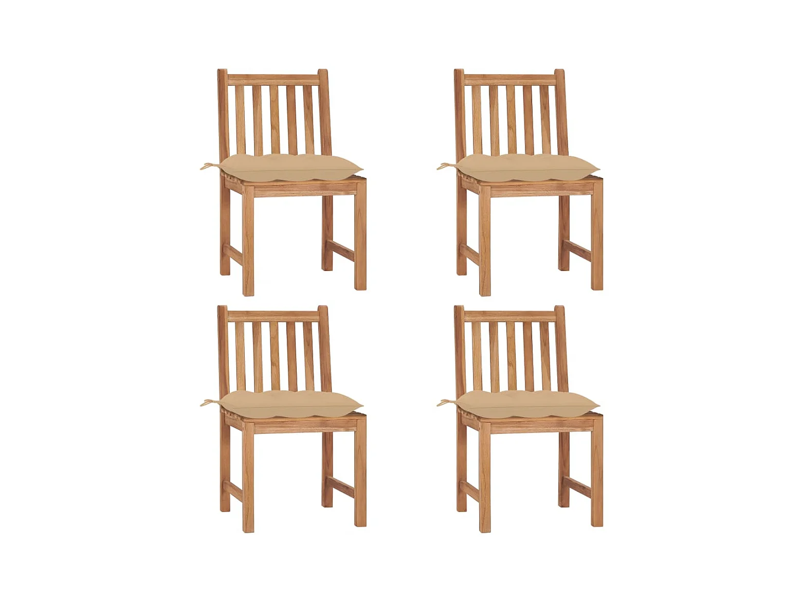 Set di 4 sedie da giardino con cuscini color crema. Legno massello di teak