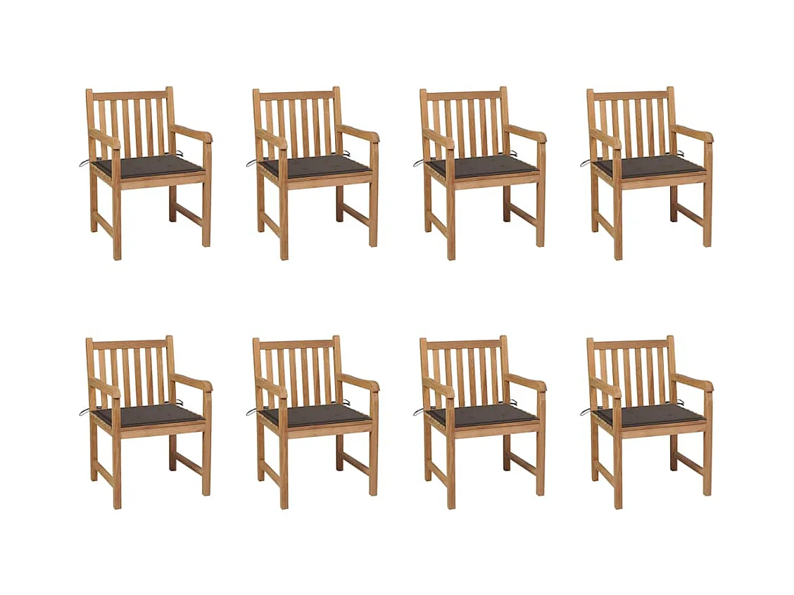 Sedie da Giardino 8 pz e Cuscini Grigio Talpa Massello di Teak