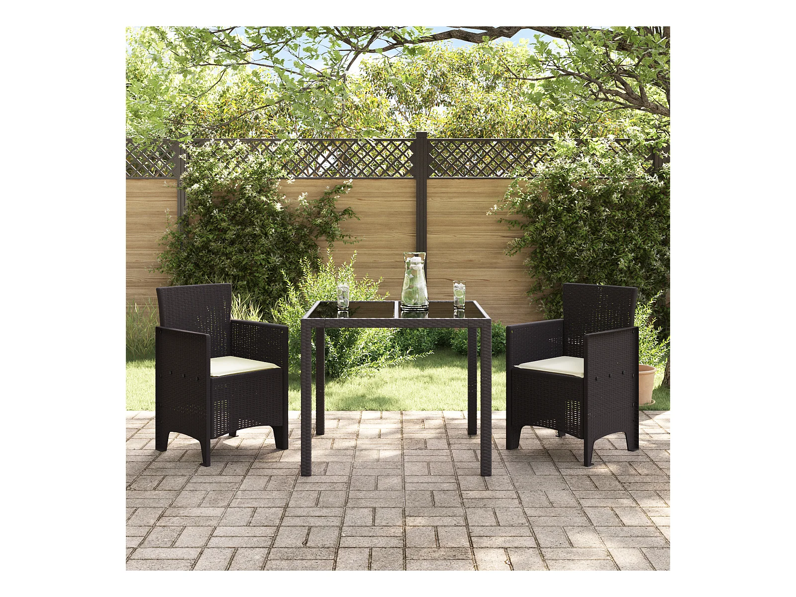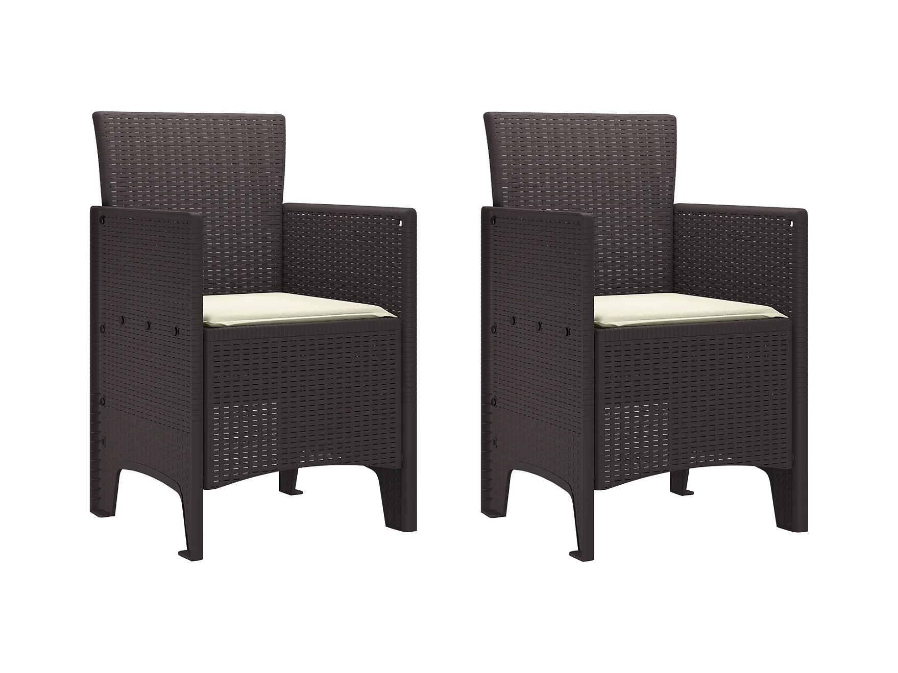 Sedie da giardino con cuscini, set da 2, marrone, resina intrecciata