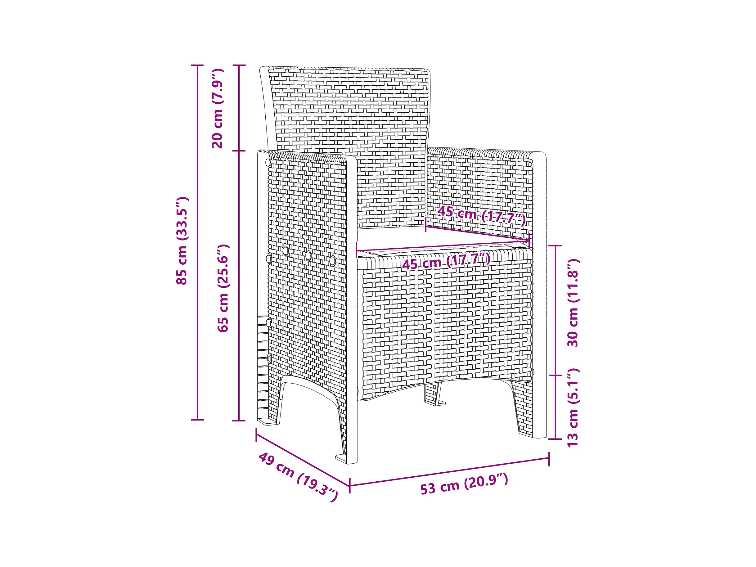Sedie da giardino con cuscini 2 pezzi in polyrattan marrone