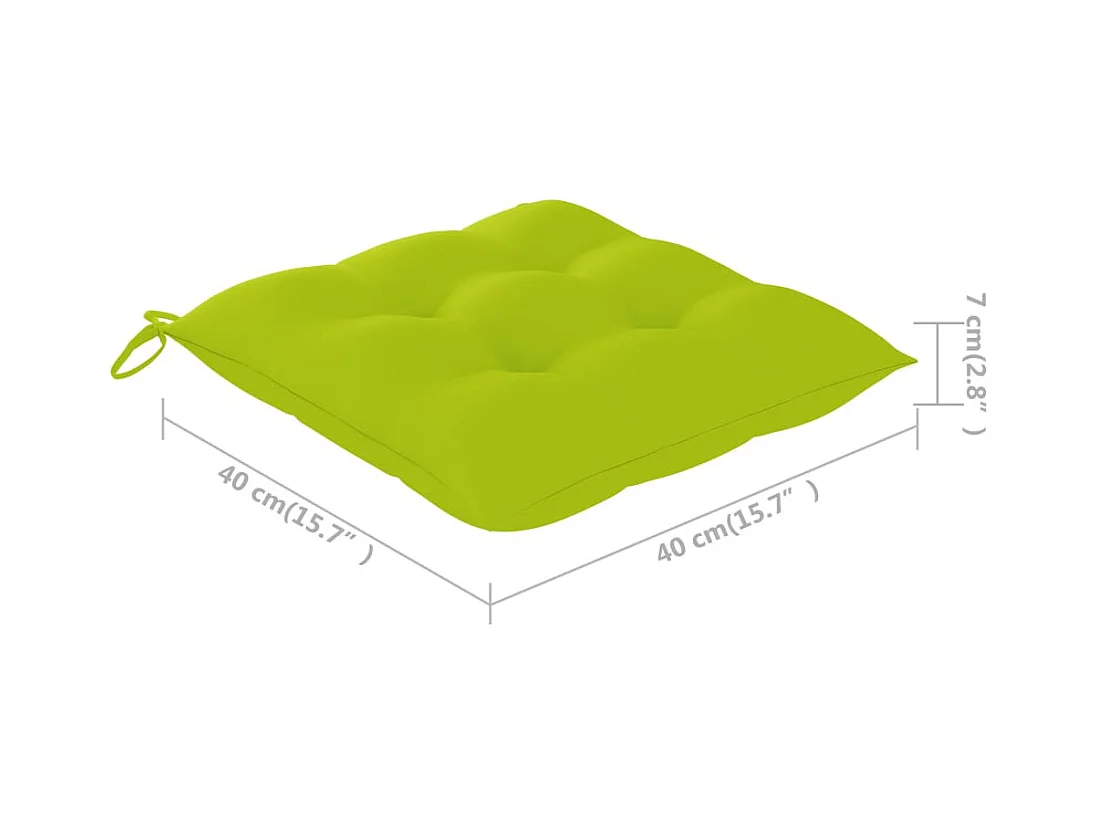 Sedie da giardino con cuscini verde brillante 3 pz. Legno di Teak