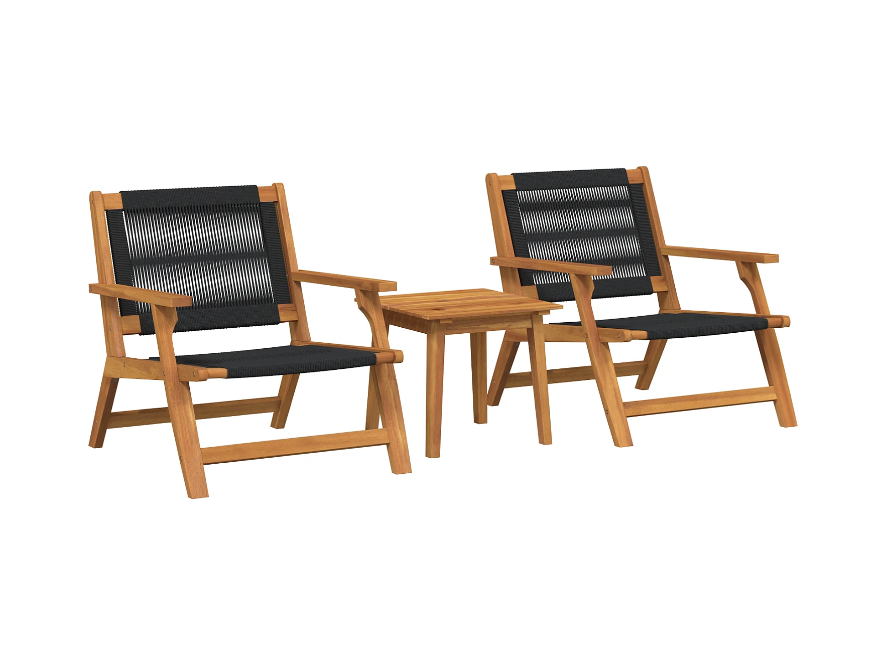 Sedie da giardino con tavolo 3 pezzi in legno massello di acacia nero
