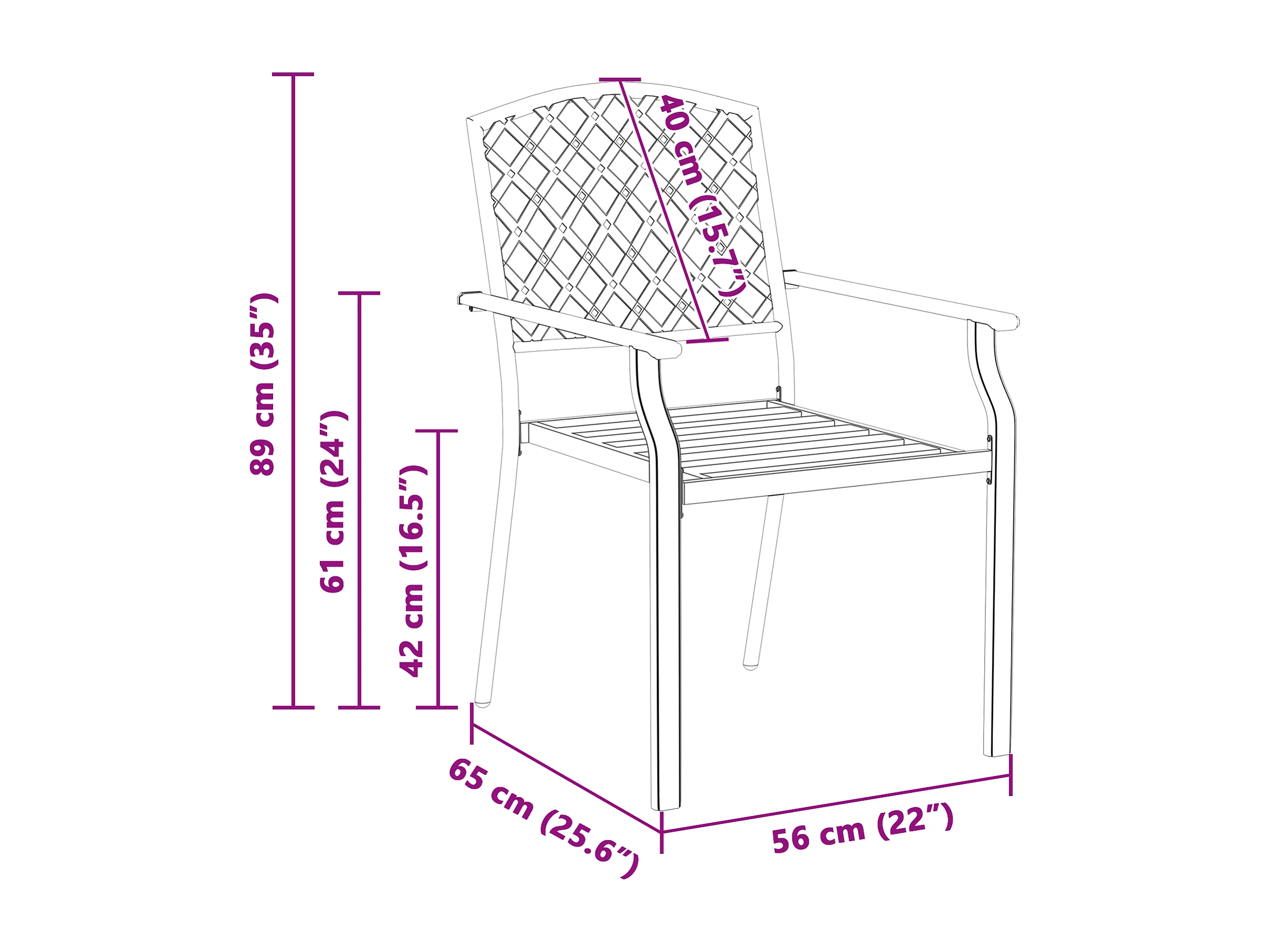 Sedie da giardino impilabili in 2 pezzi in acciaio antracite